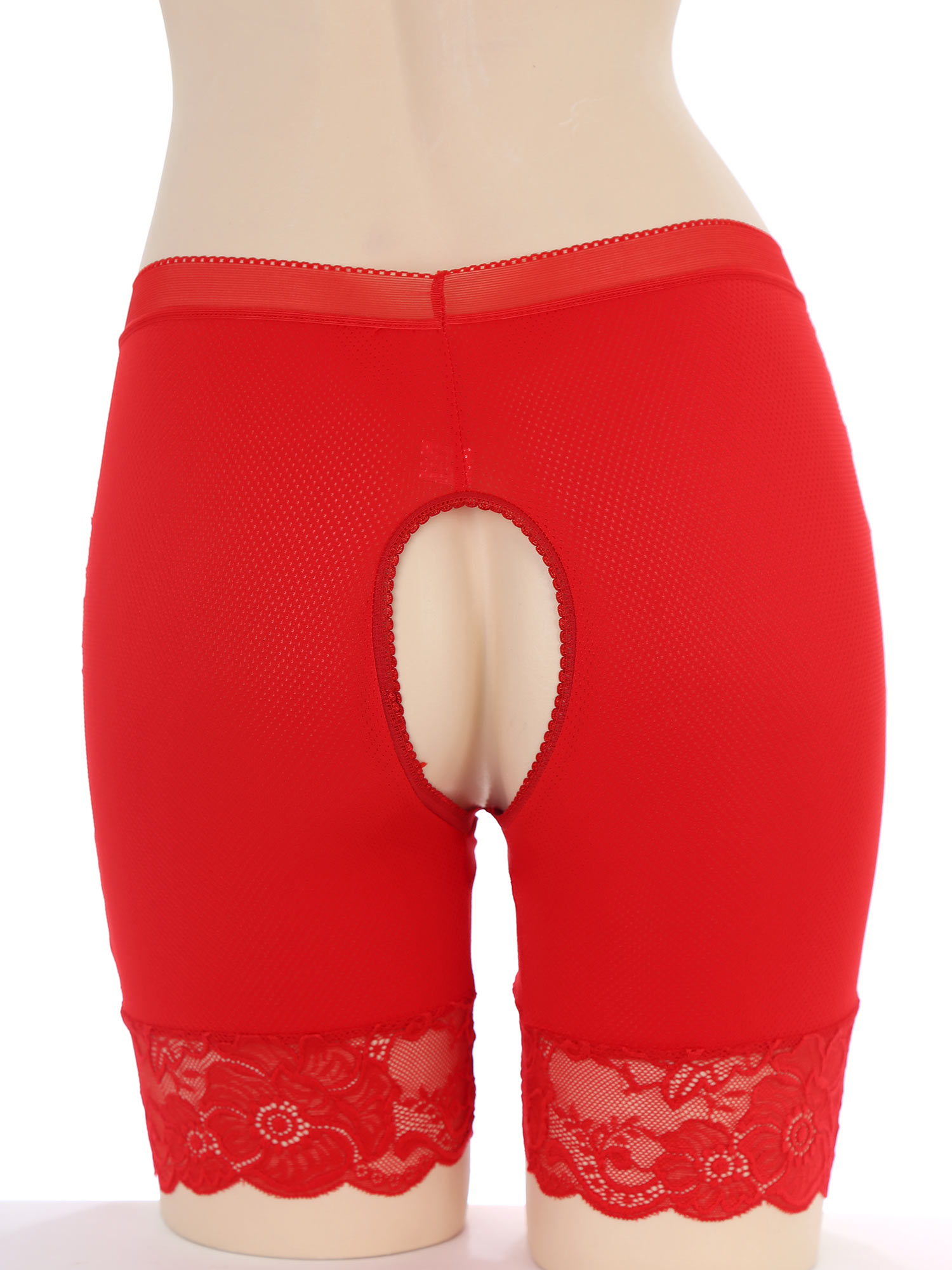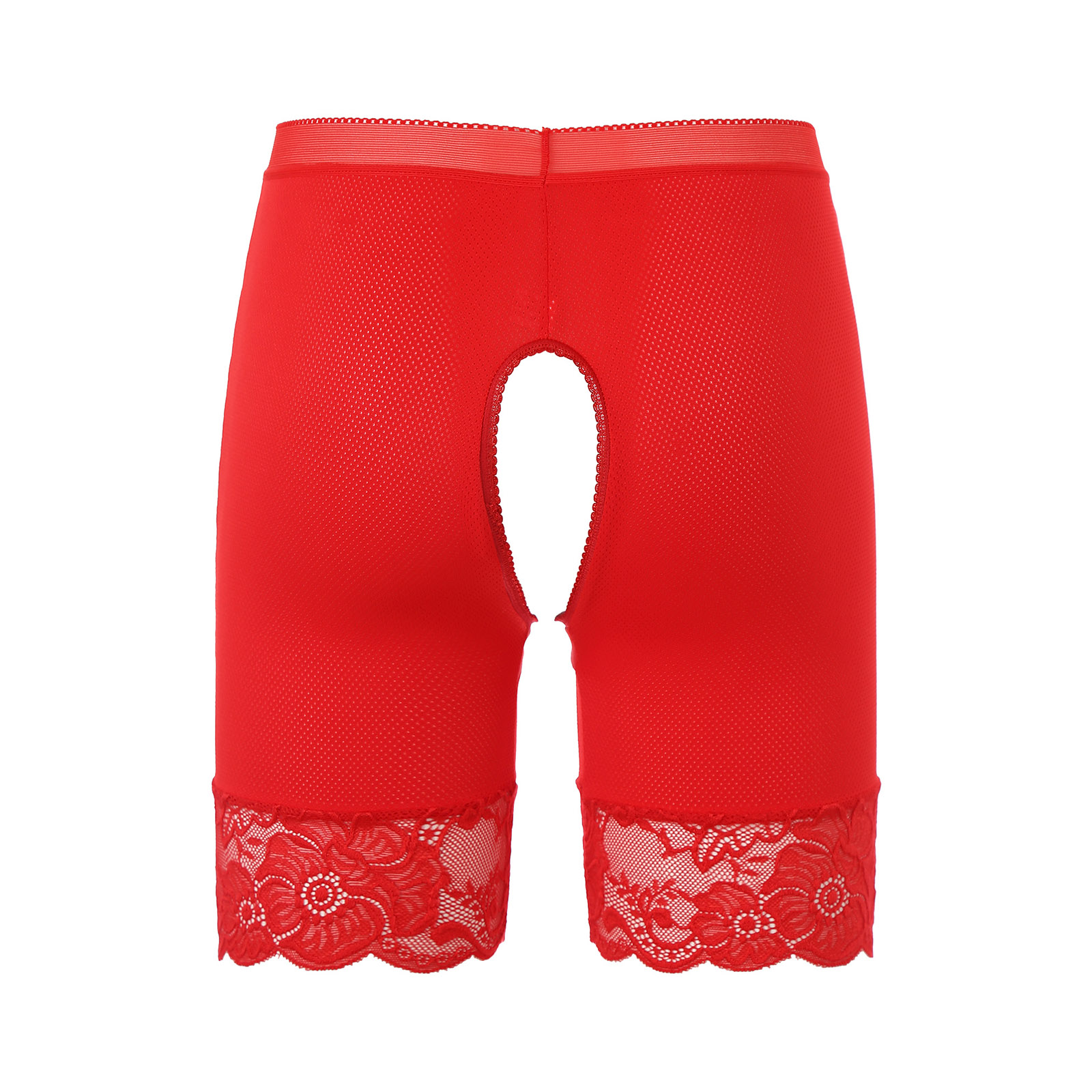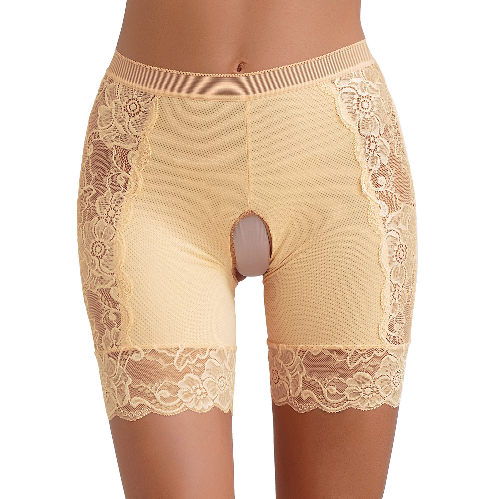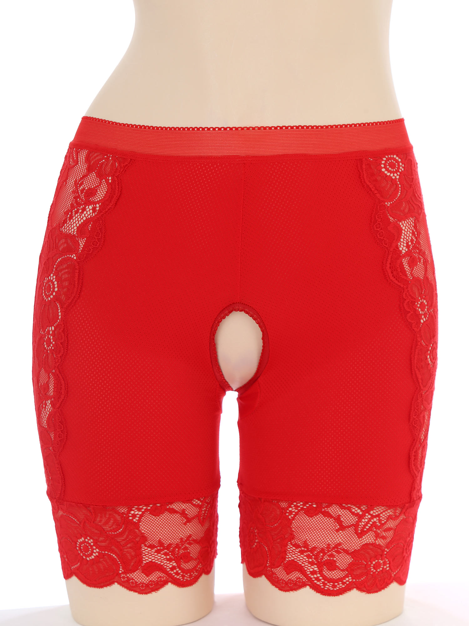 Womens Lace Open Crotch Underwear Knickers Solid Color Safety Shorts High Waist Skinny Boxers Briefs for Clubwear Dating Night