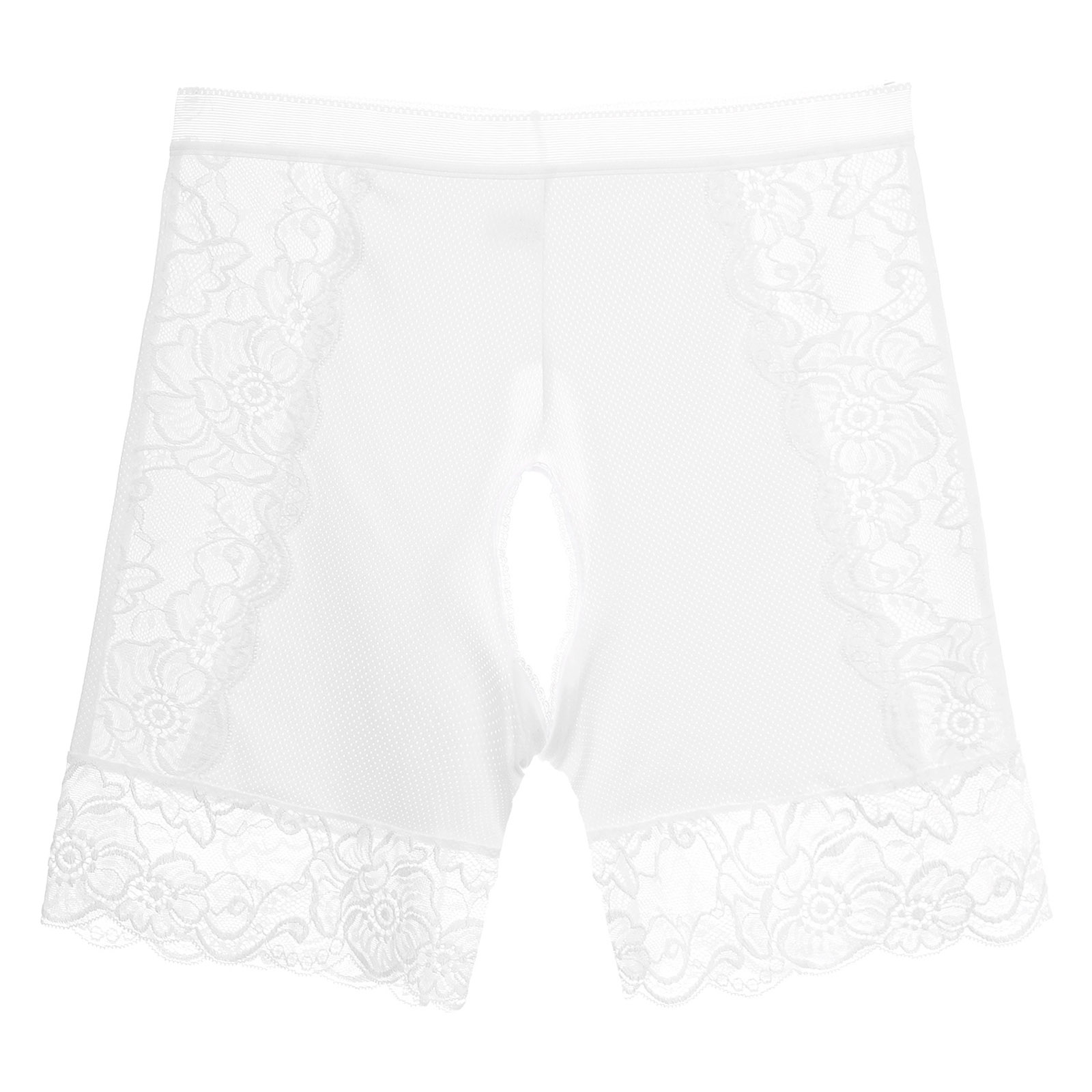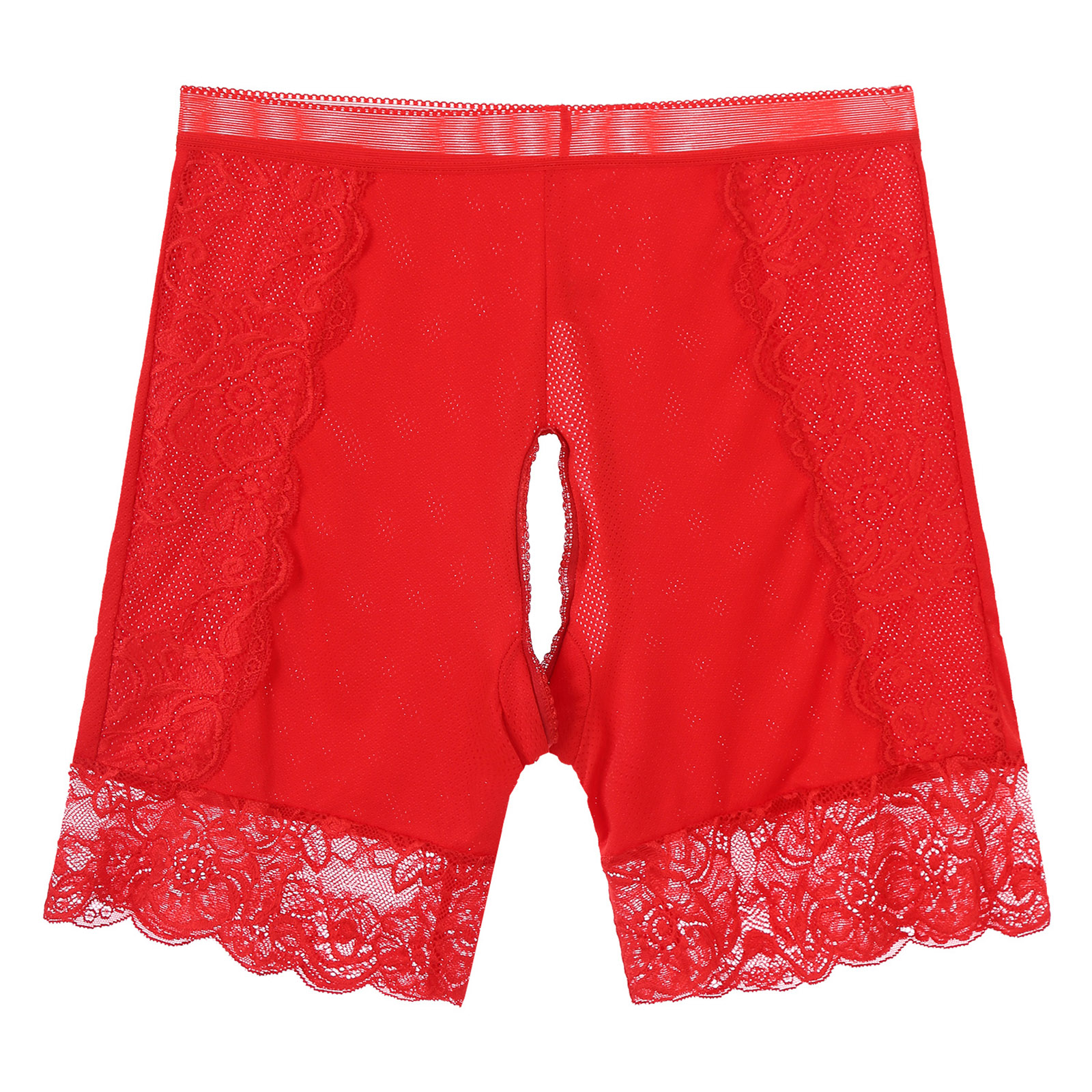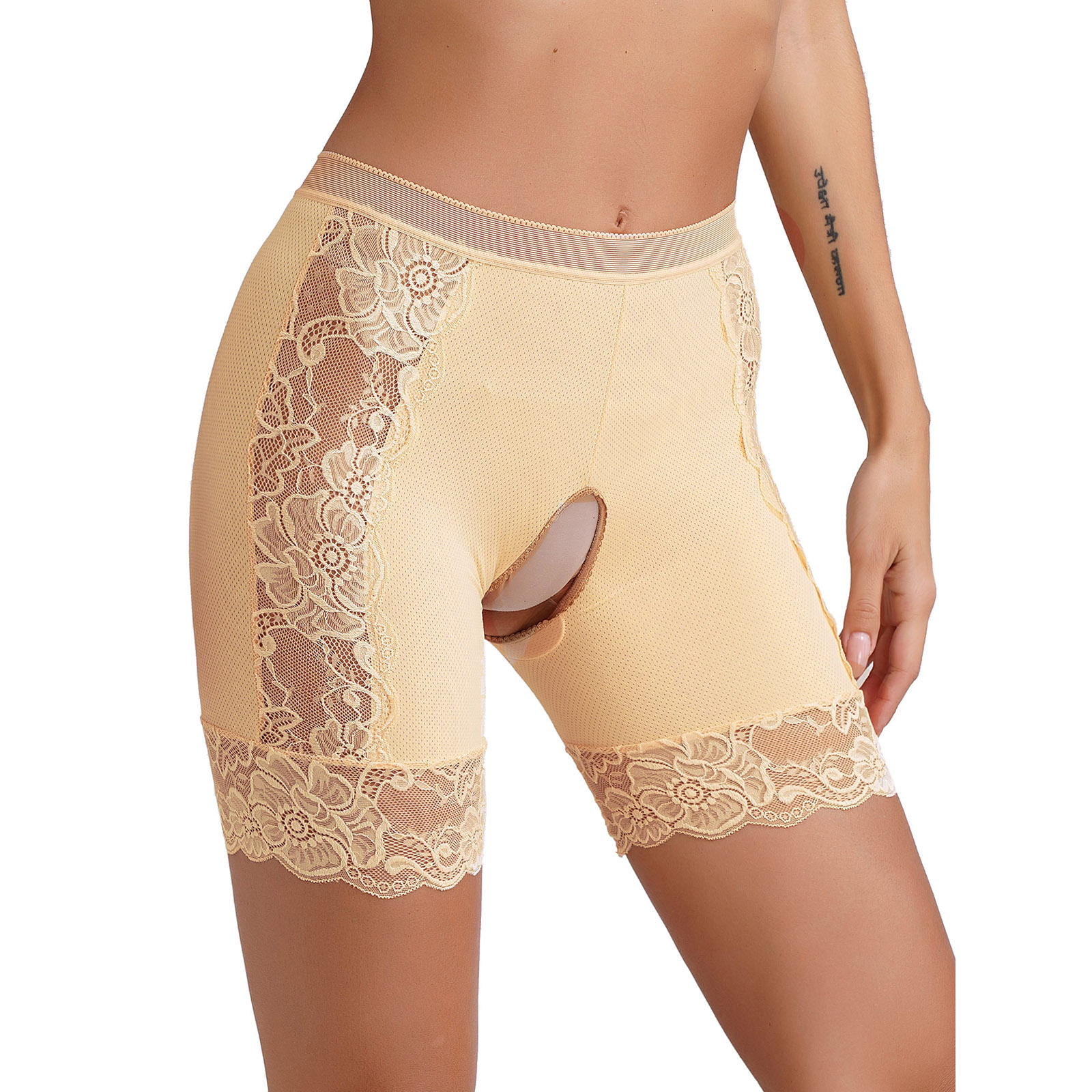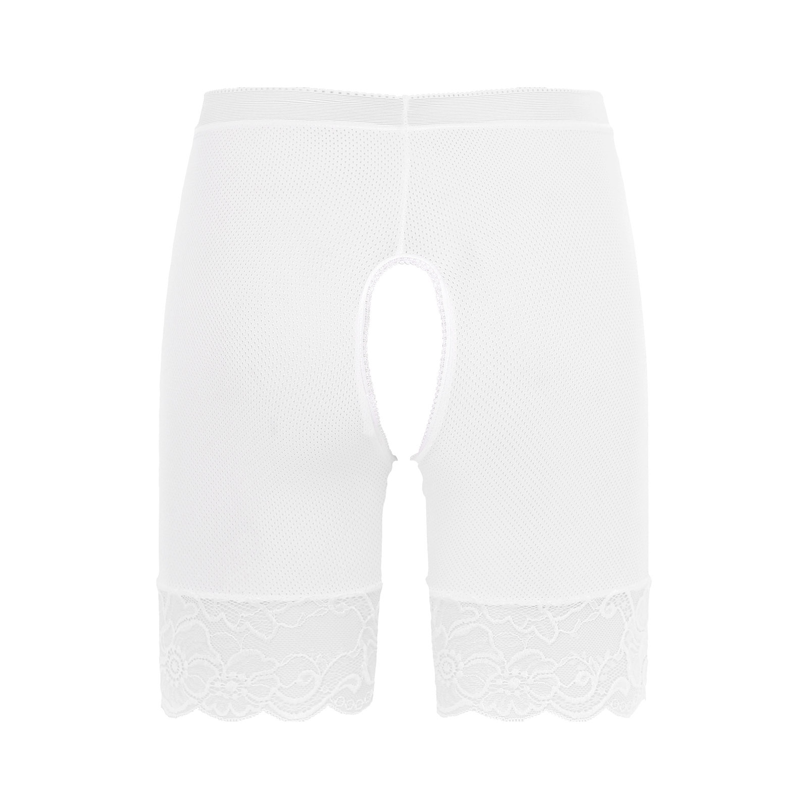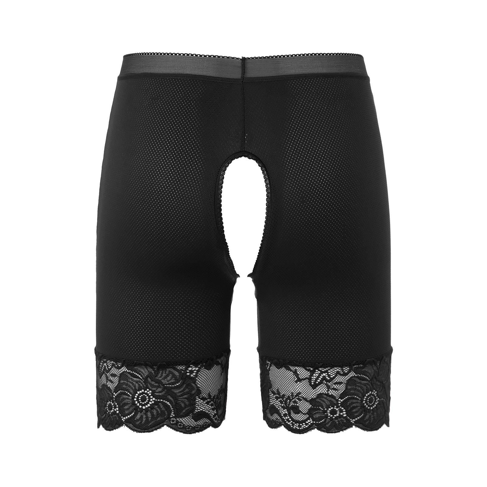 Womens Lace Open Crotch Underwear Knickers Solid Color Safety Shorts High Waist Skinny Boxers Briefs for Clubwear Dating Night