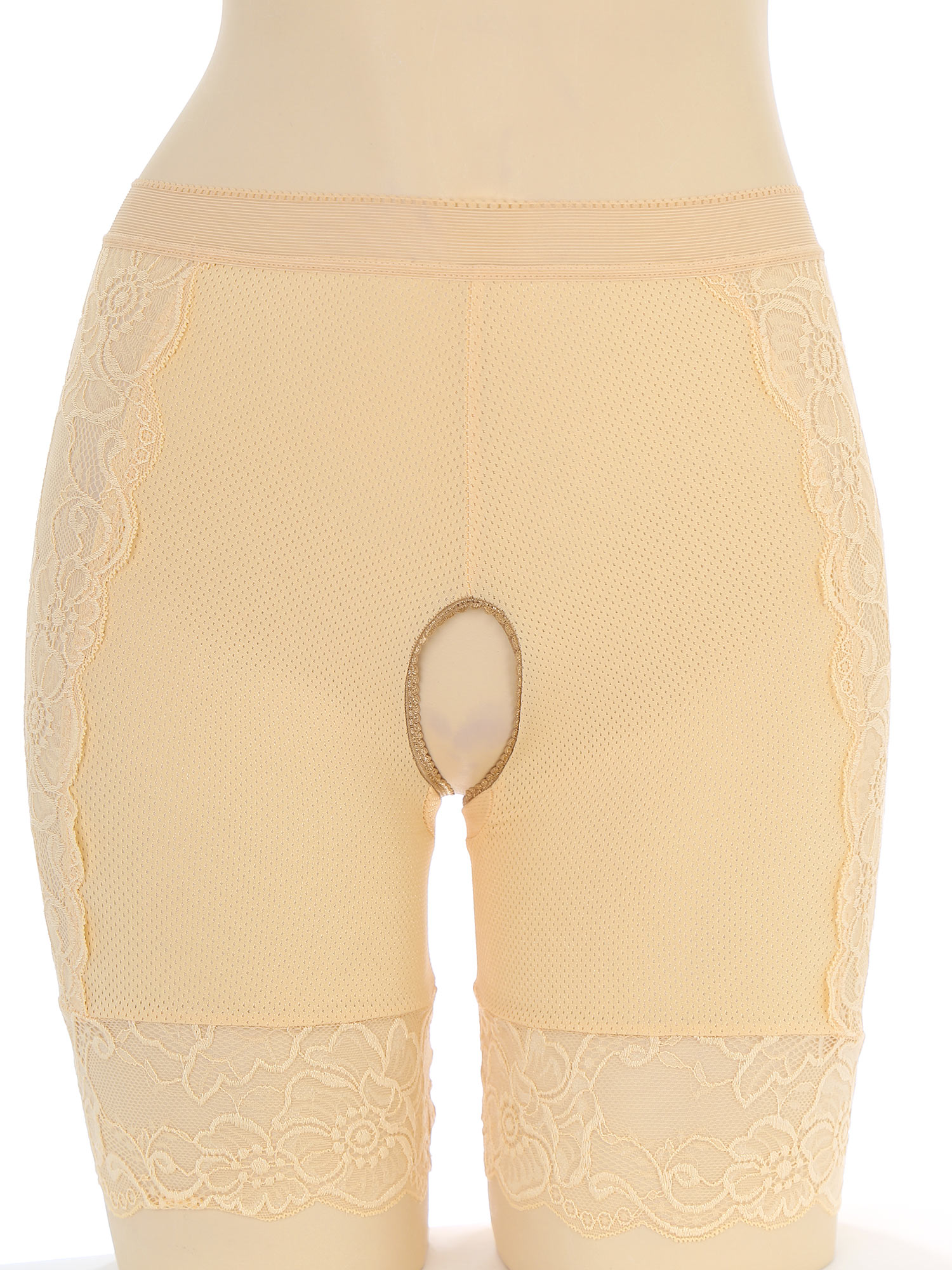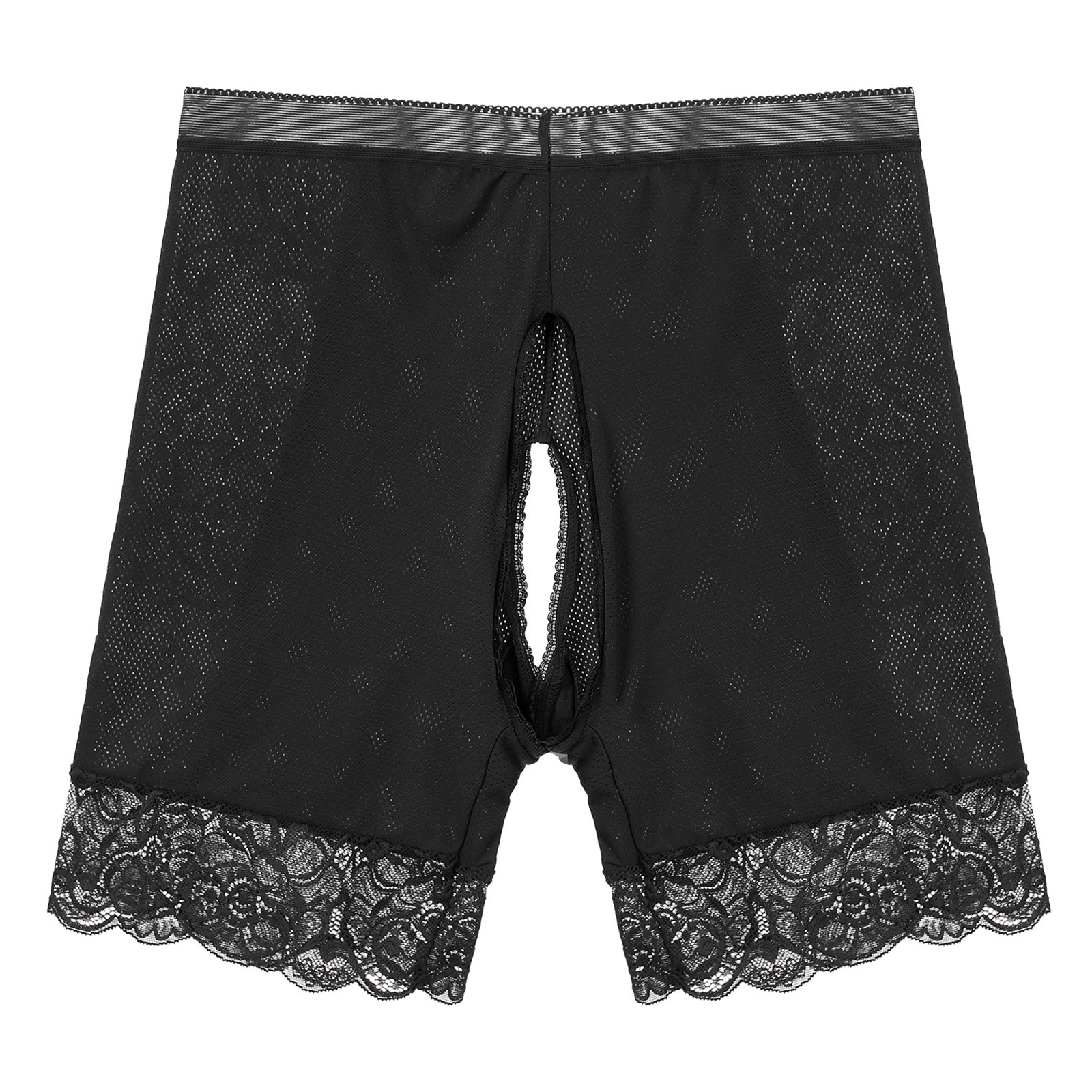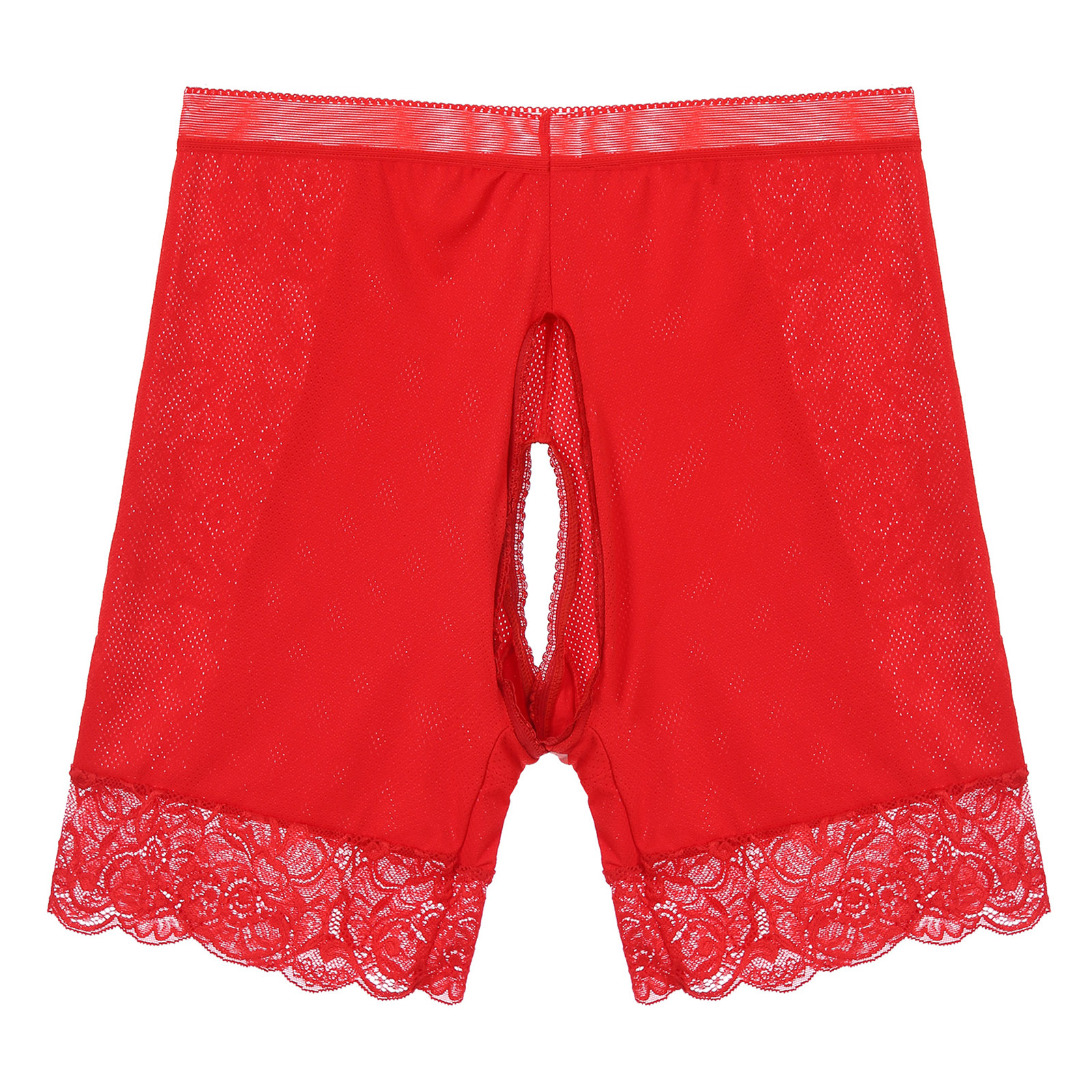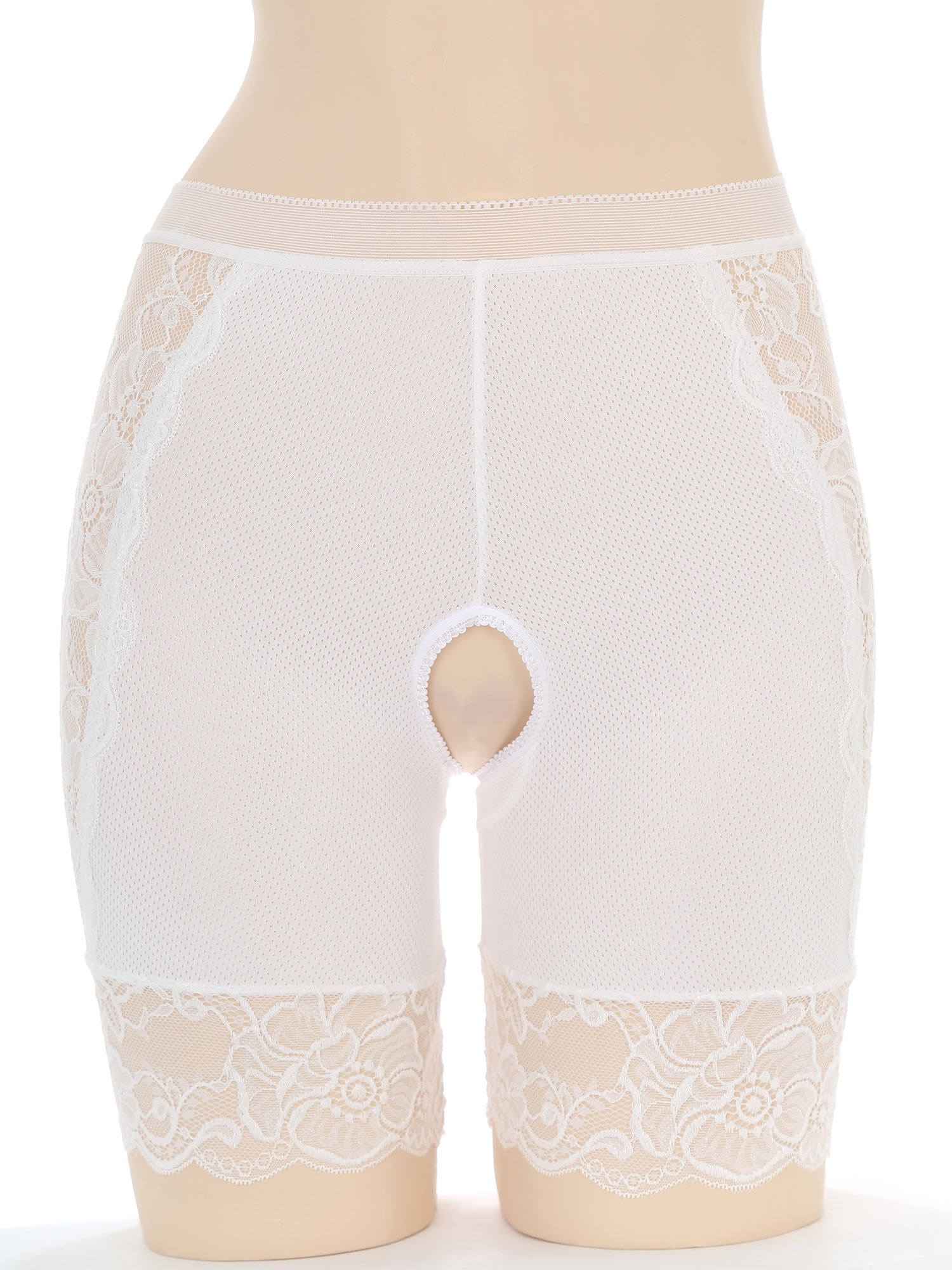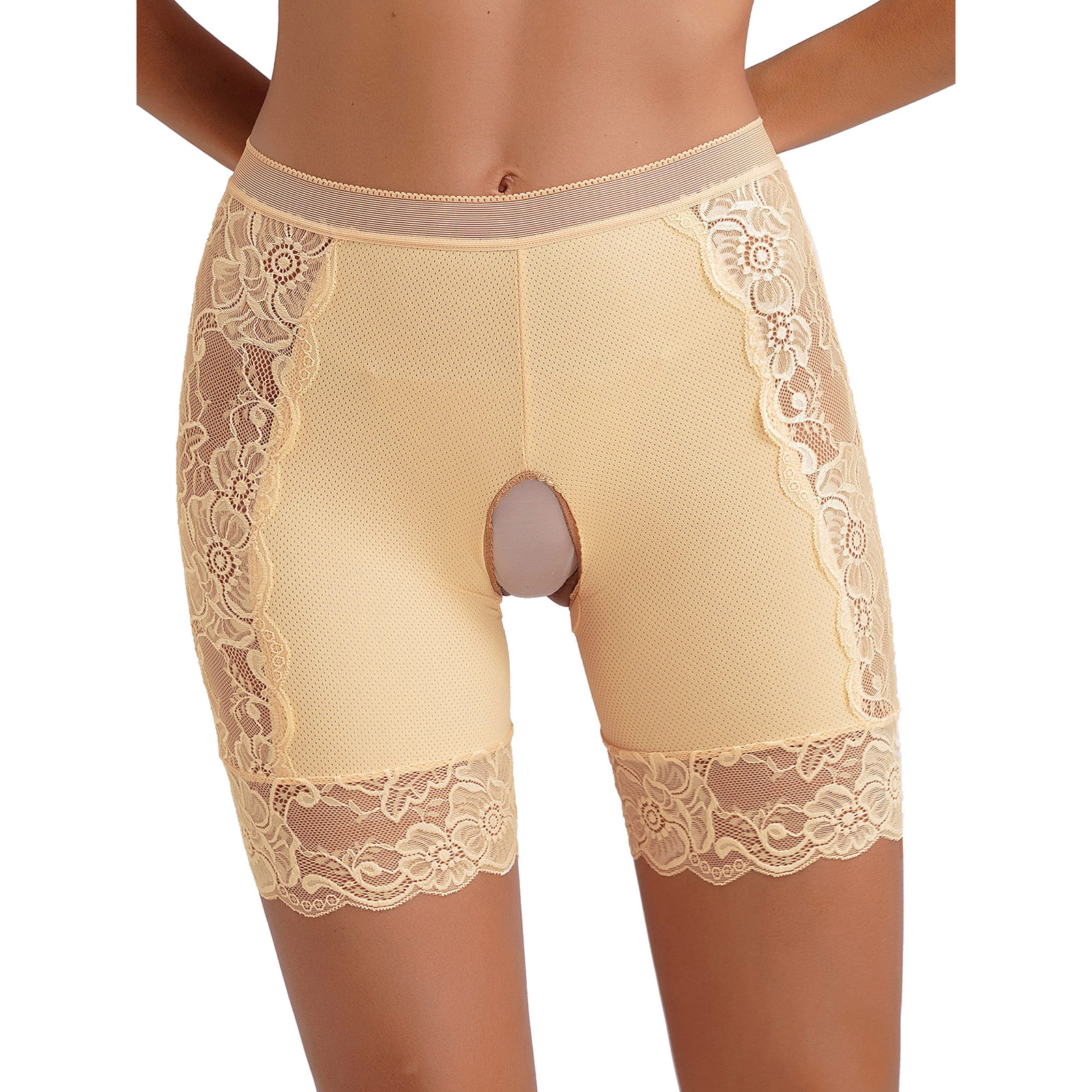 Womens Lace Open Crotch Underwear Knickers Solid Color Safety Shorts High Waist Skinny Boxers Briefs for Clubwear Dating Night
