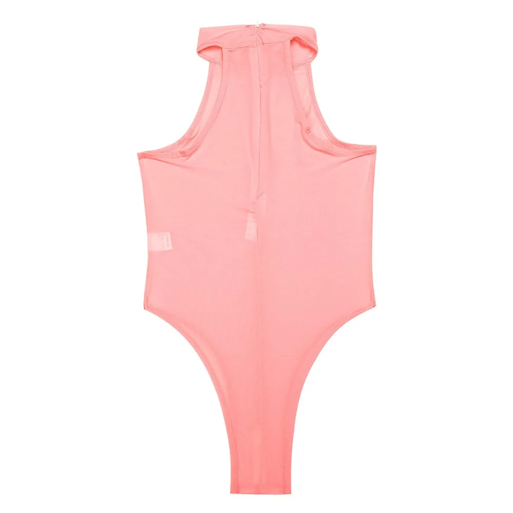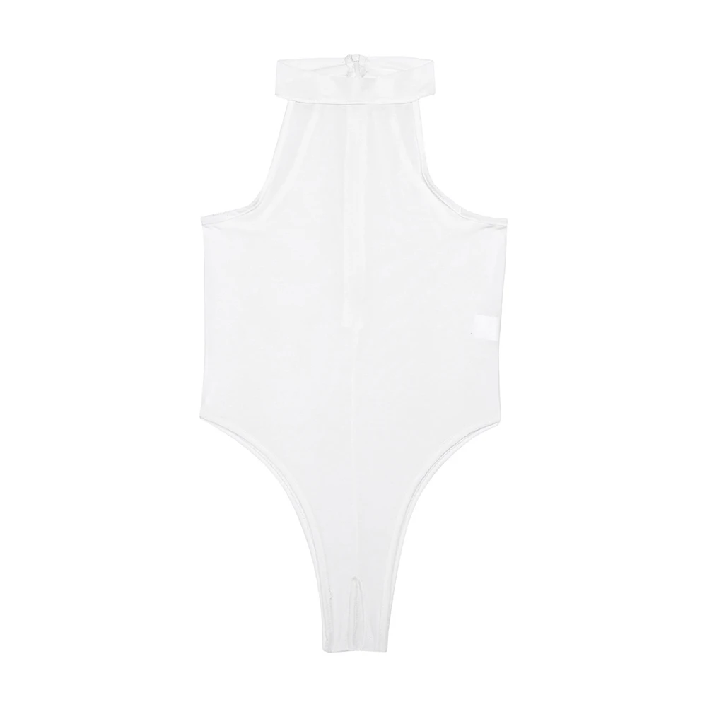 Womens Lingerie Bodycon Night Club Mock Neck High Cut Open Butt Crotchless Thong Leotard See Through Bodysuit Jumpsuit