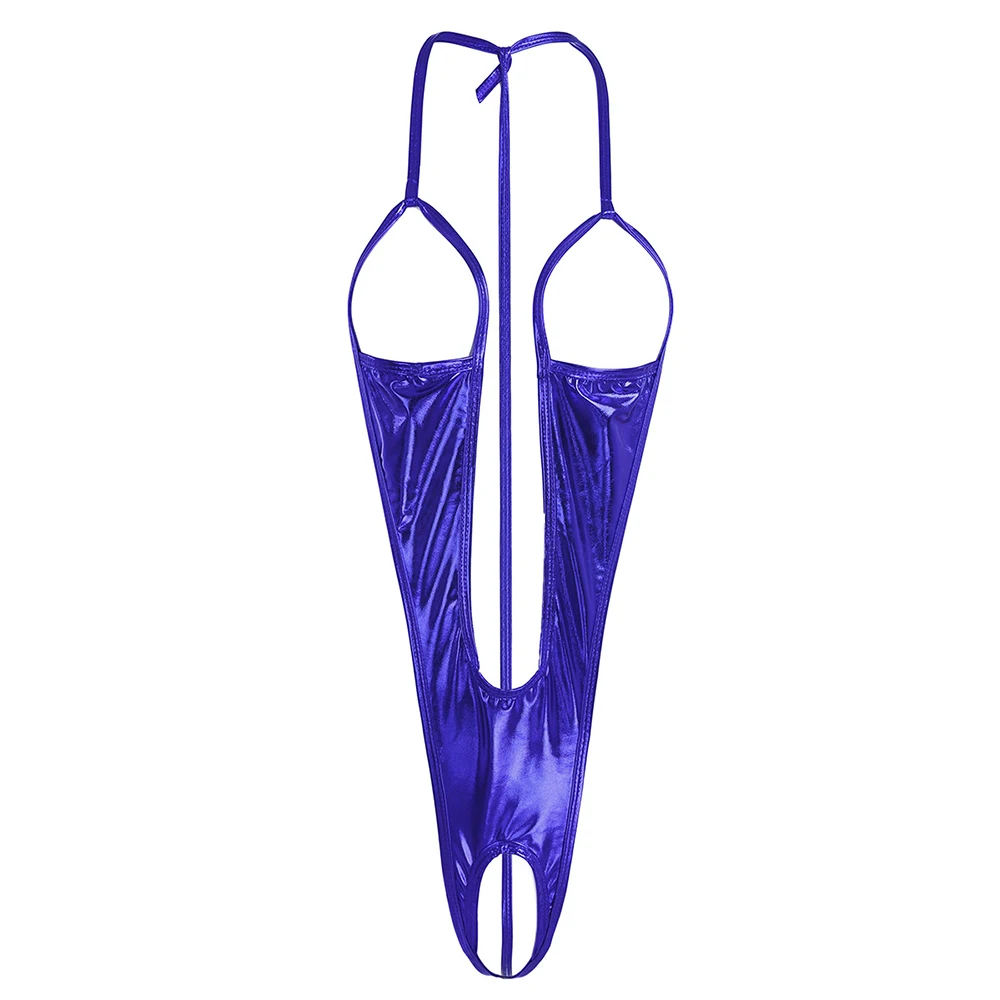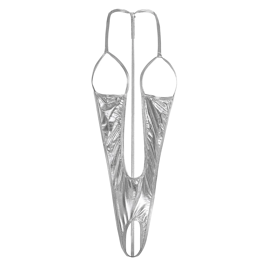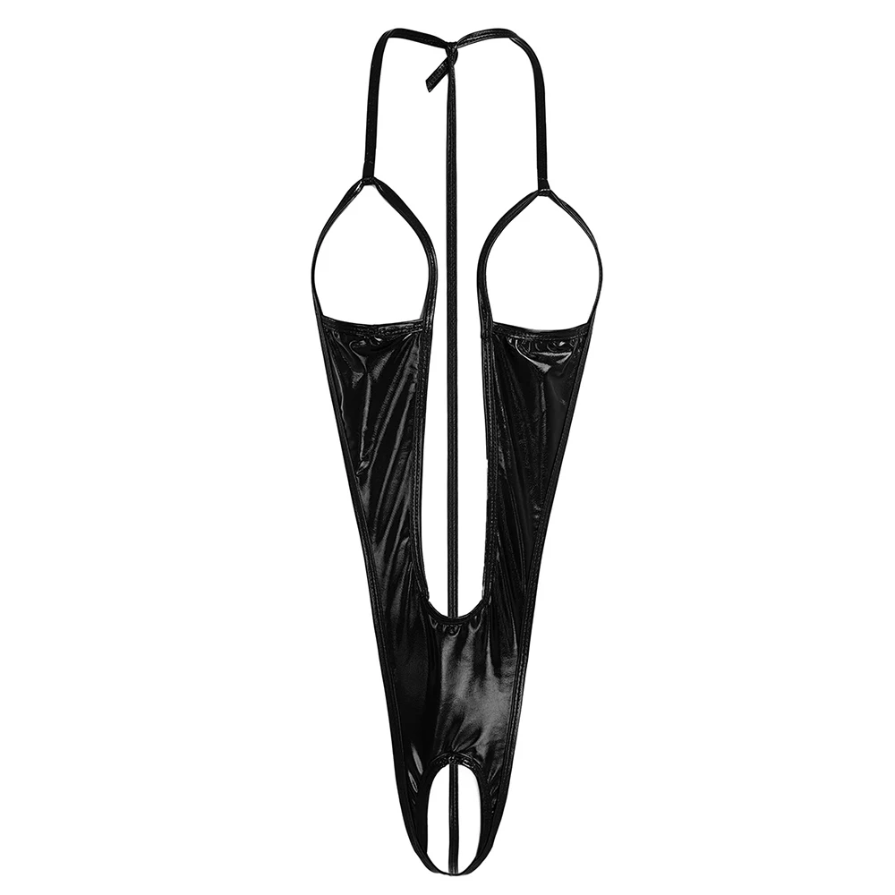 Womens Lingerie Patent Leather Open Bust Bodycon Bodysuit Backless Crotchless Open Chest Sexy Bodysuit Erotic Sexy