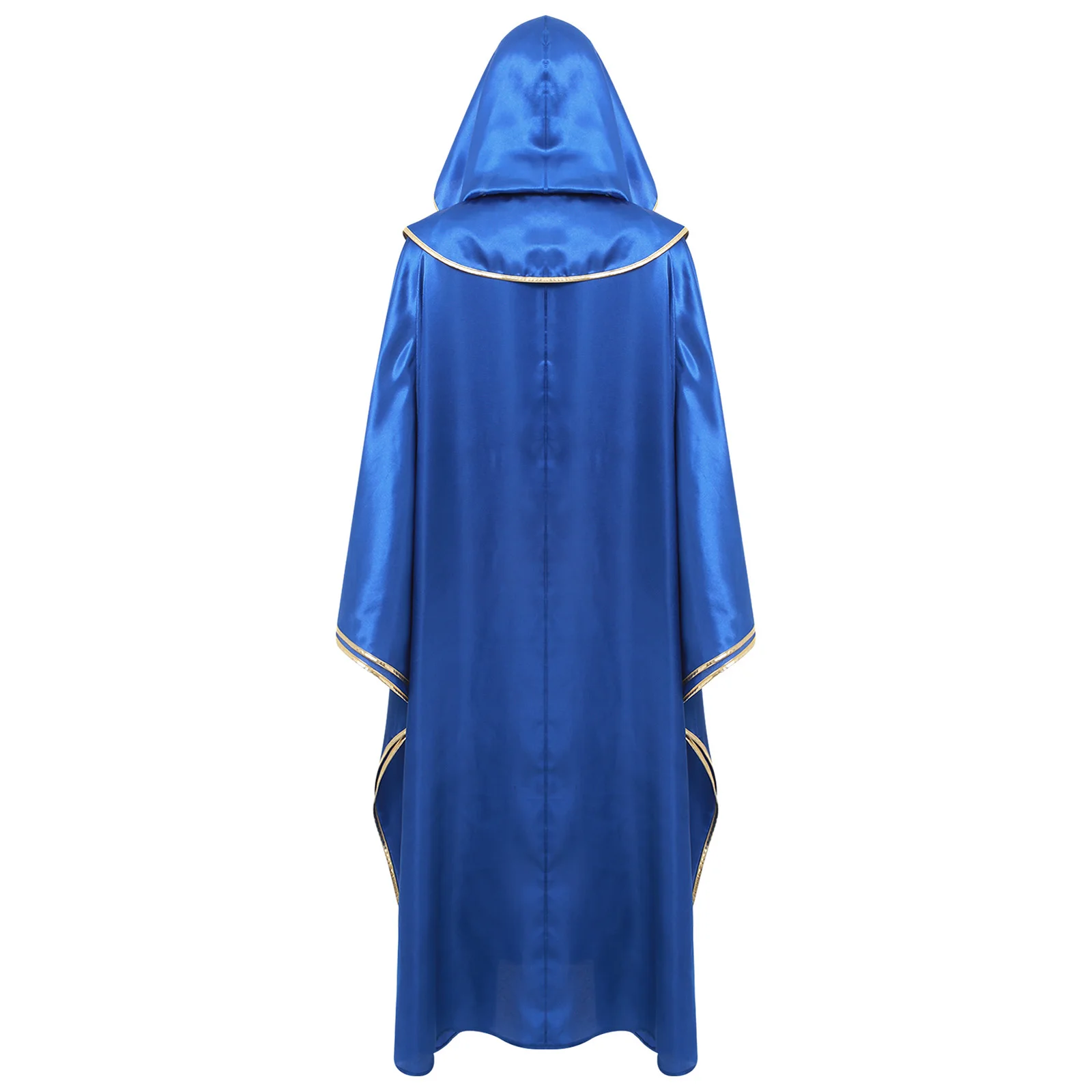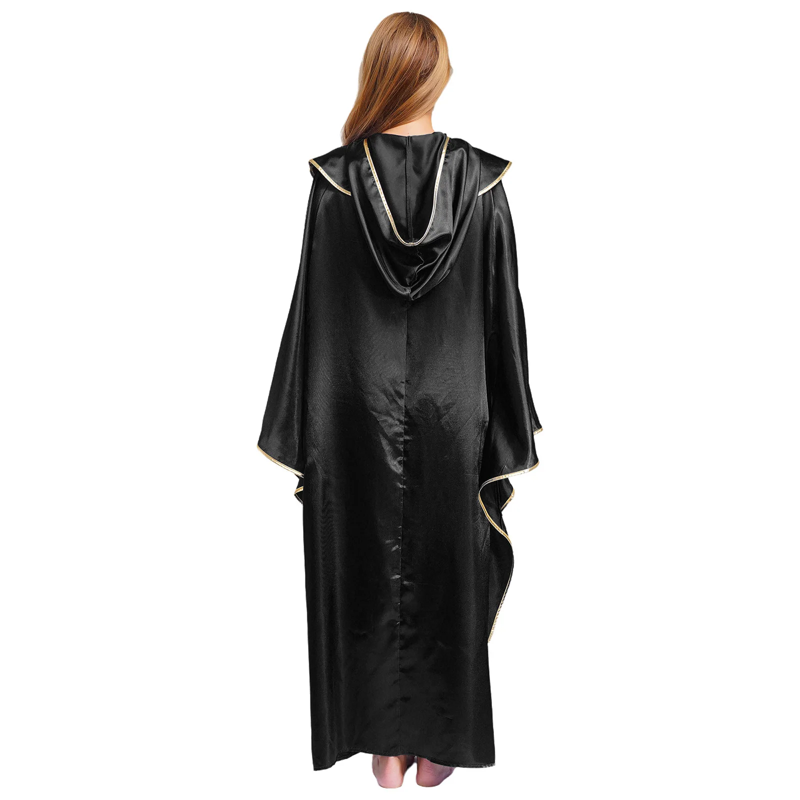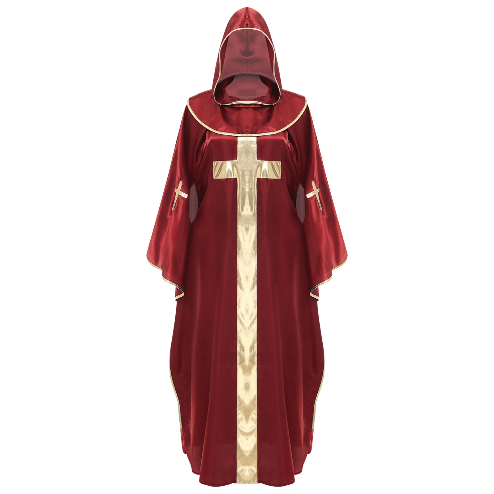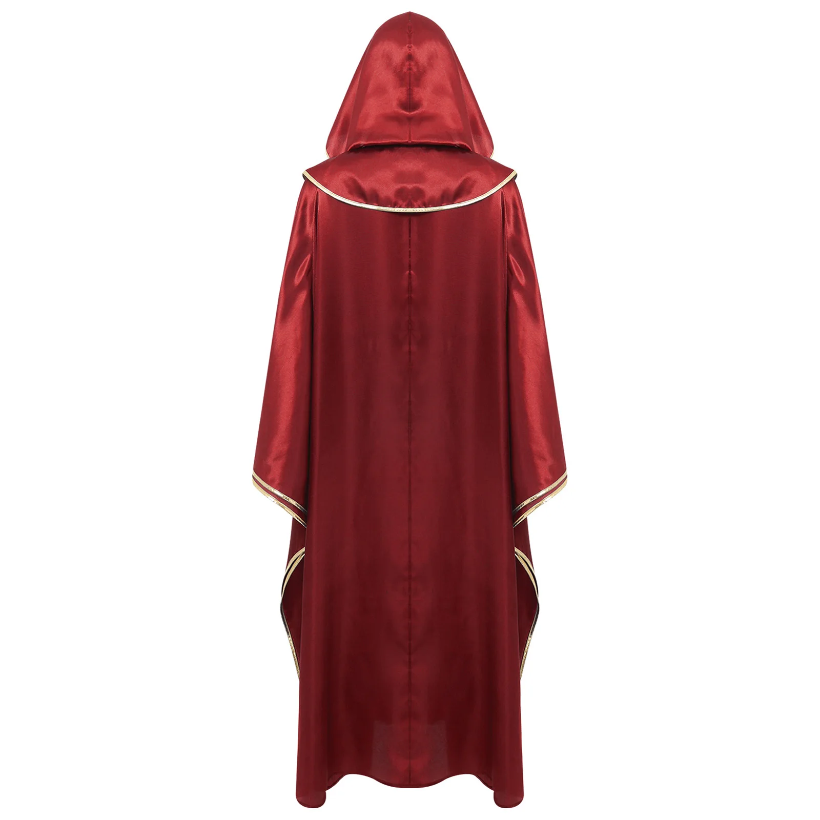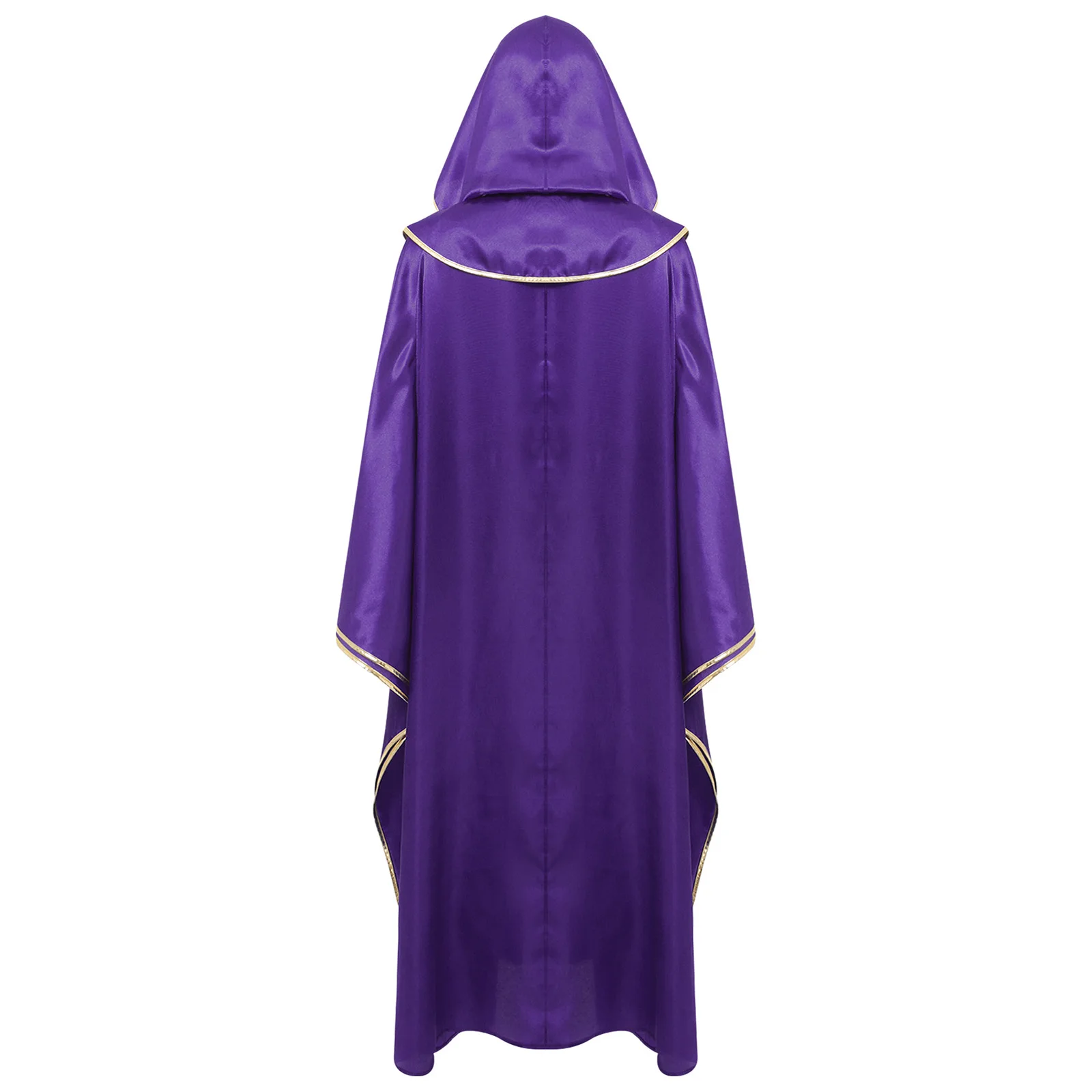 Womens Mens Halloween Priest Vampire Wizard Witch Cosplay Costume Hooded Robe Metallic Shiny Trim Pullover Pastor Vestments Cape