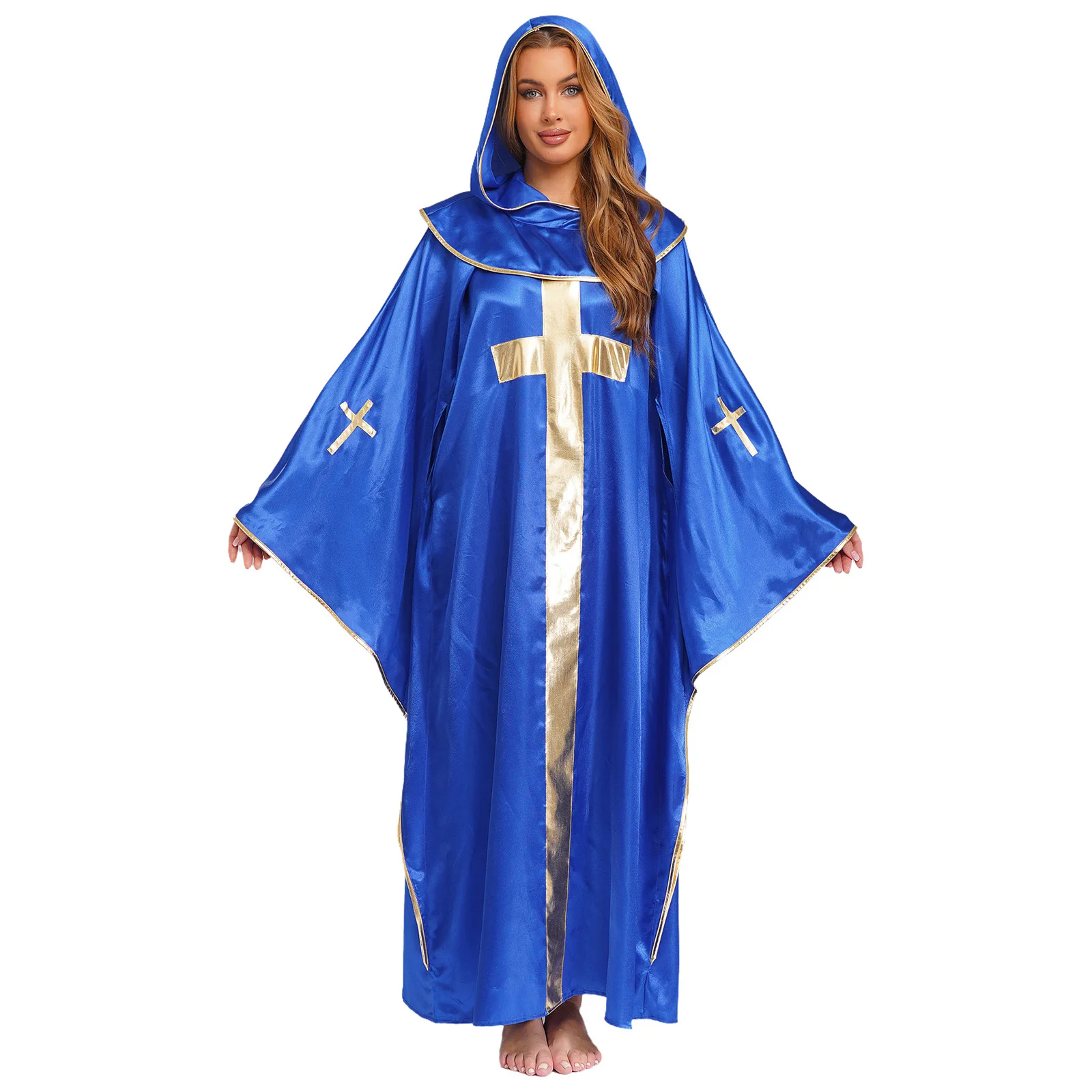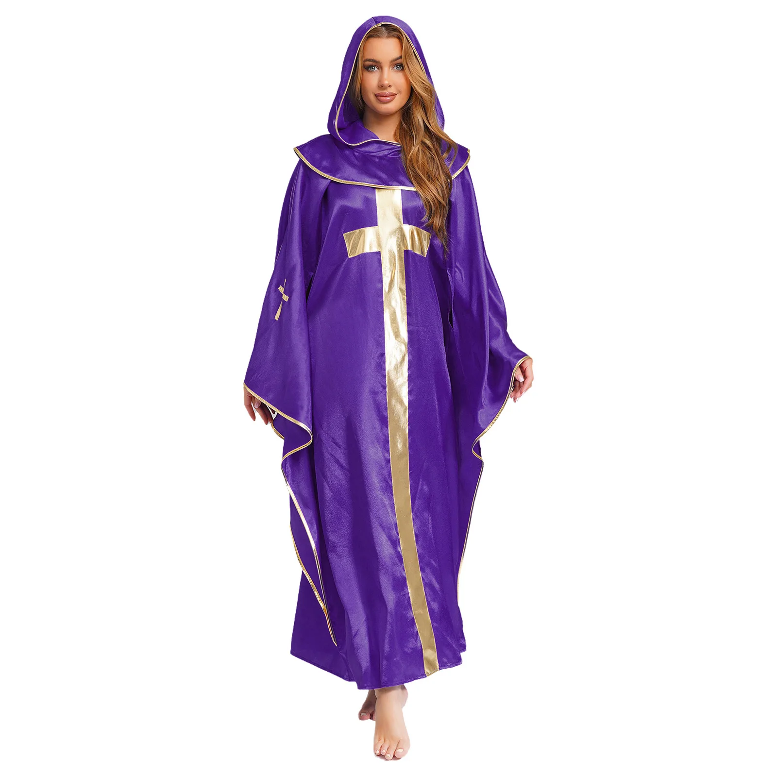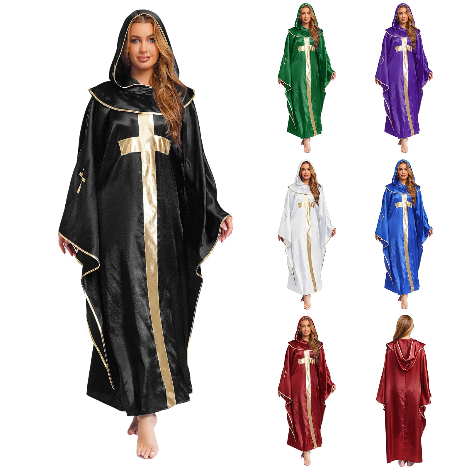 The hooded design gives a mysterious and immersive feel, perfect for creating an authentic priest or pastor cosplay.