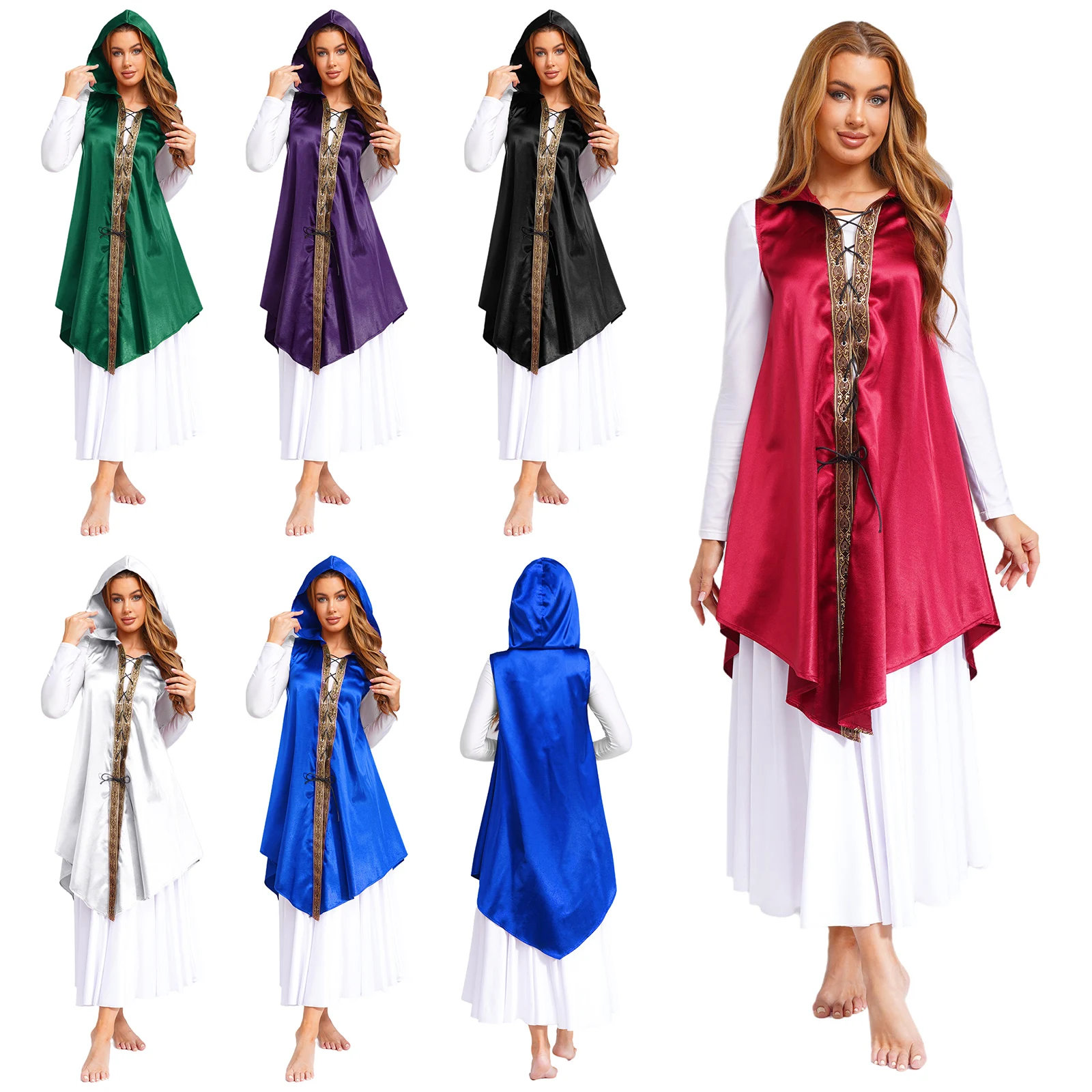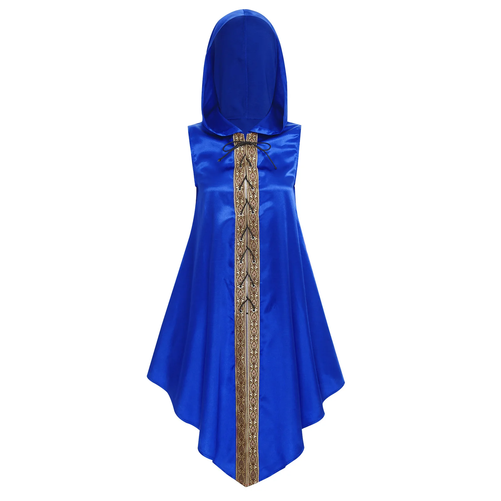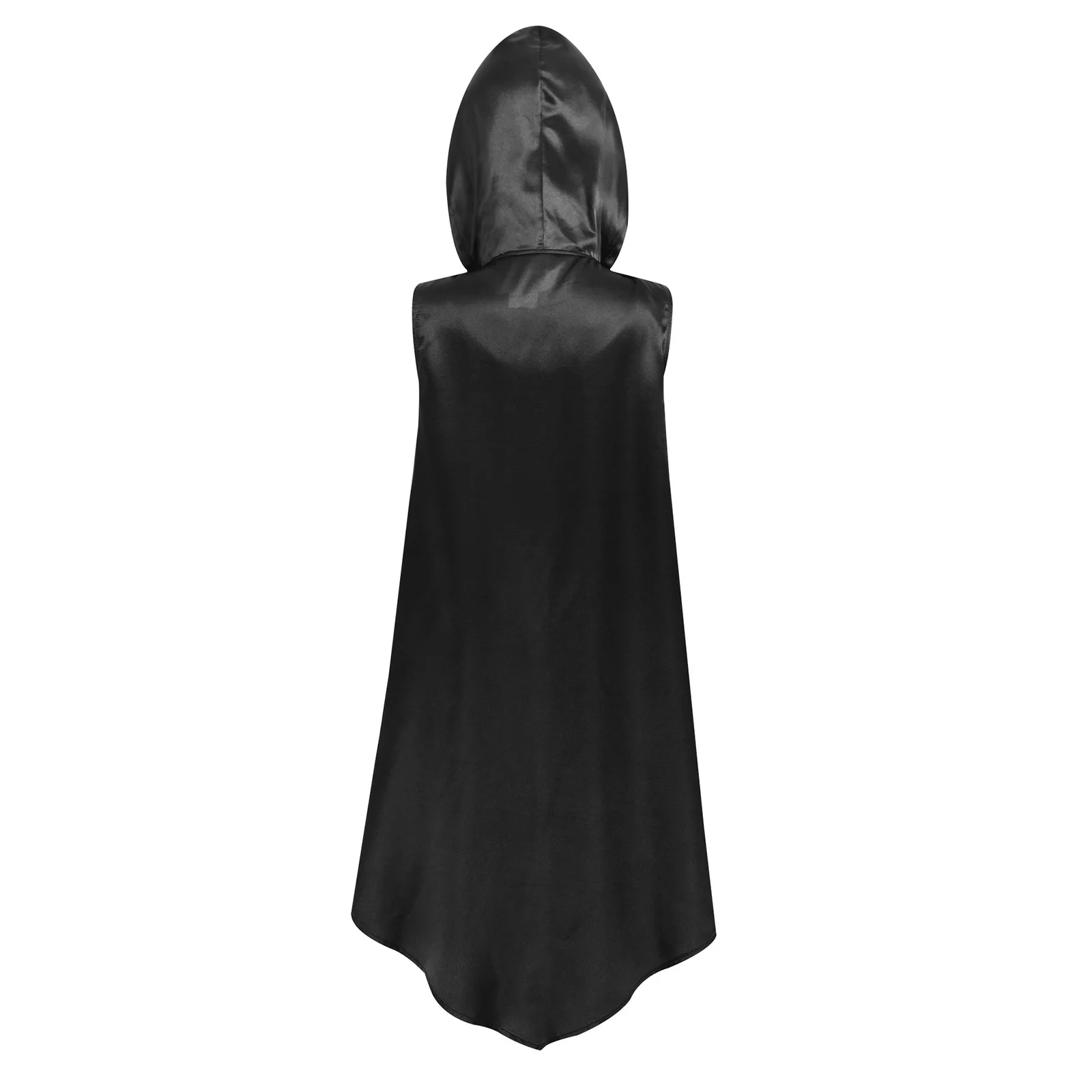 Womens Mens Medieval Devil Wizard Cosplay Costume Renaissance Hooded Cloak Front Lace-up with Retro Satin Cape Gothic Punk Robe