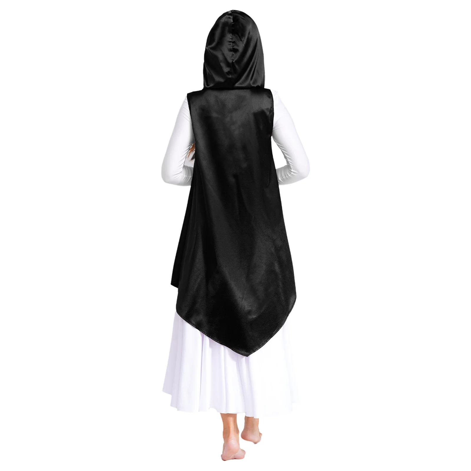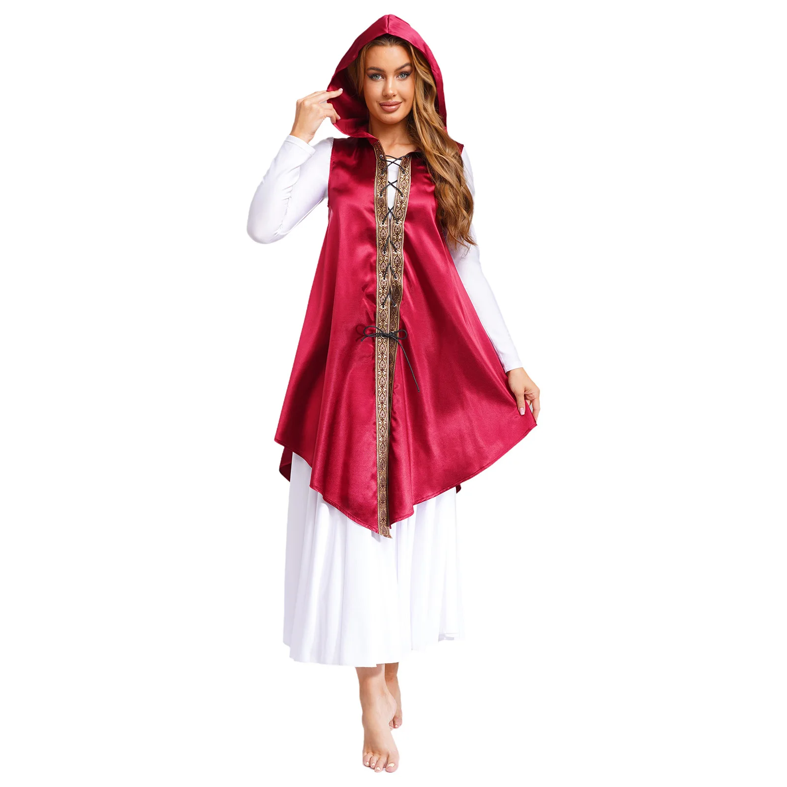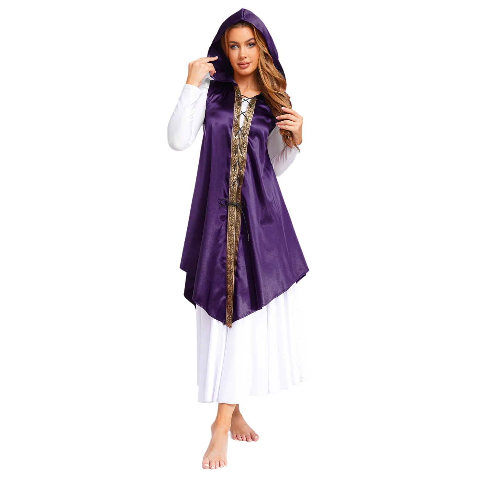 Womens Mens Medieval Devil Wizard Cosplay Costume Renaissance Hooded Cloak Front Lace-up with Retro Satin Cape Gothic Punk Robe