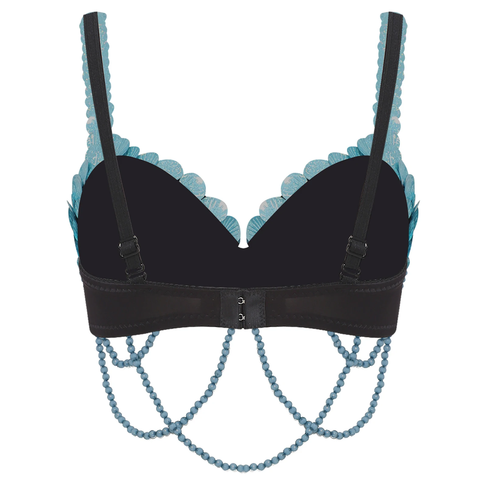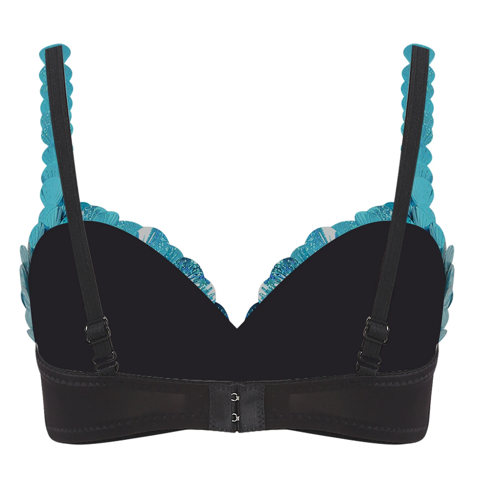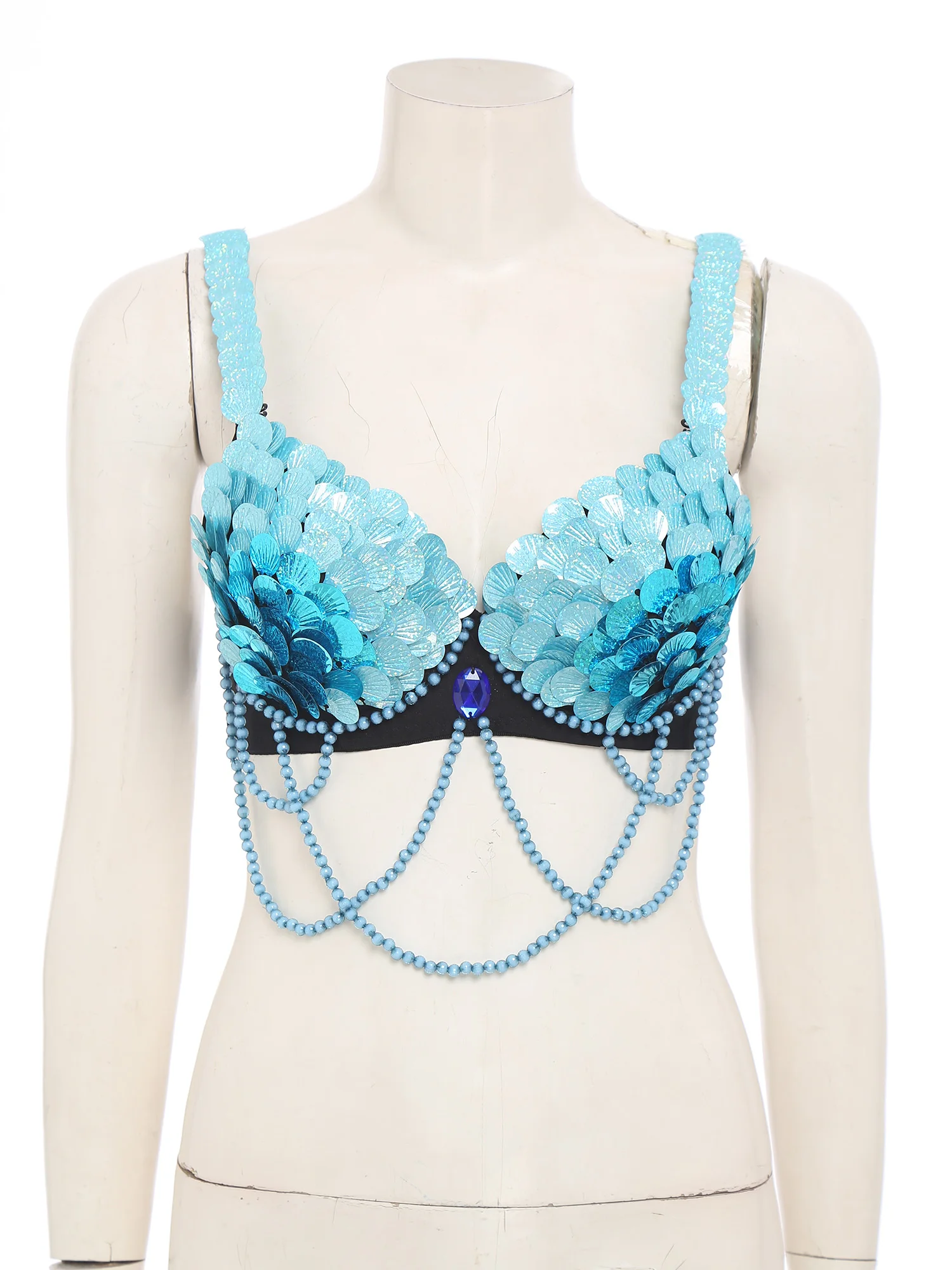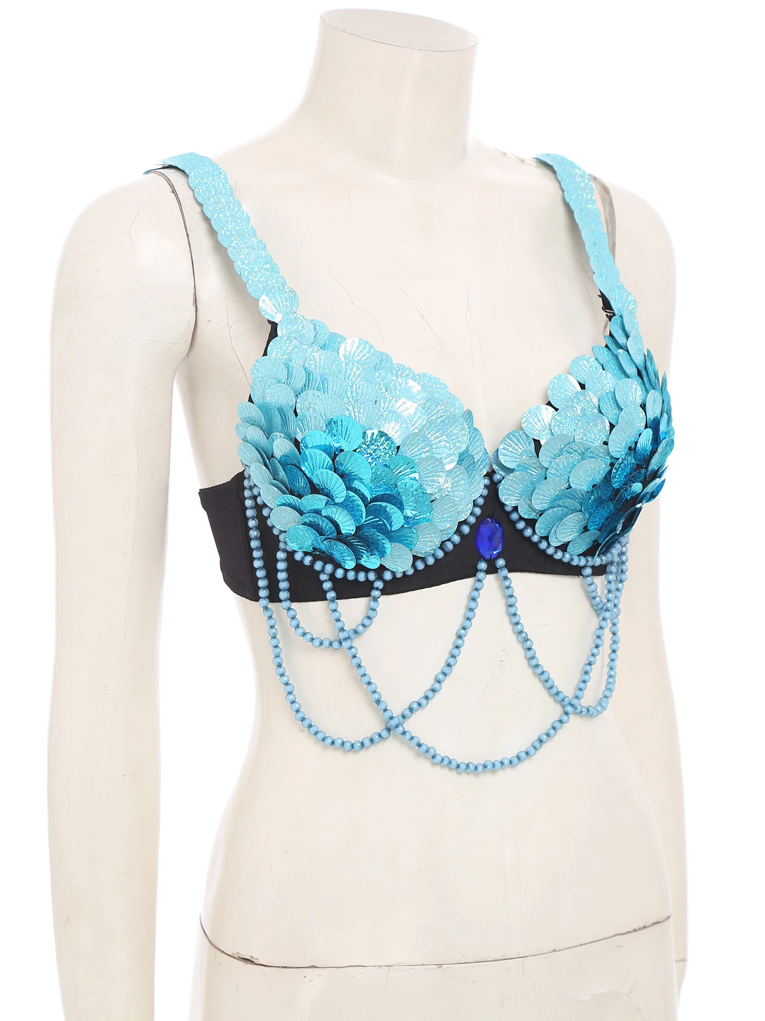 Womens Mermaid Belly Dance Cosplay Costume Raves Festival Bra Top Fish-scale Sequins Decor Push-up Underwire Bralette Balconette