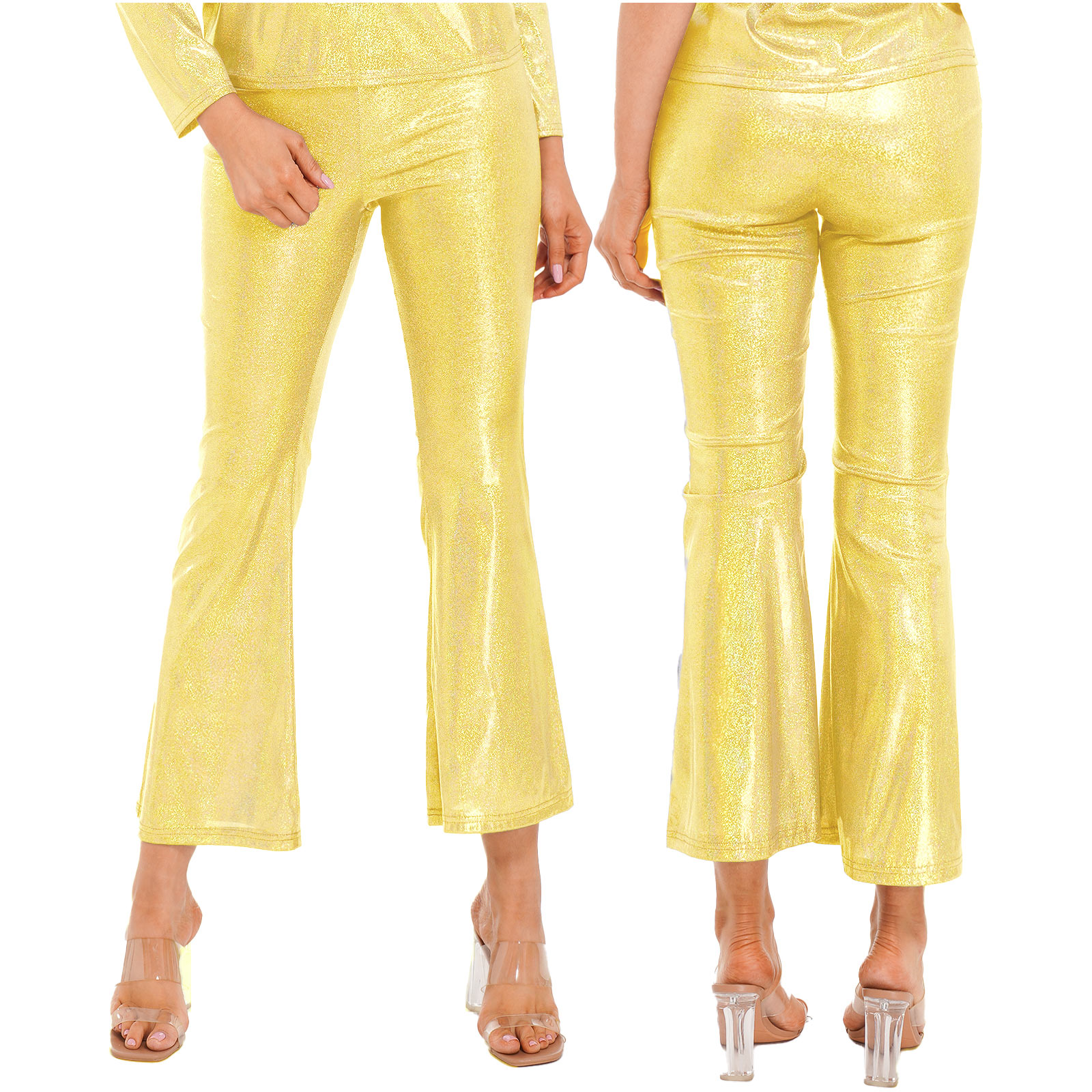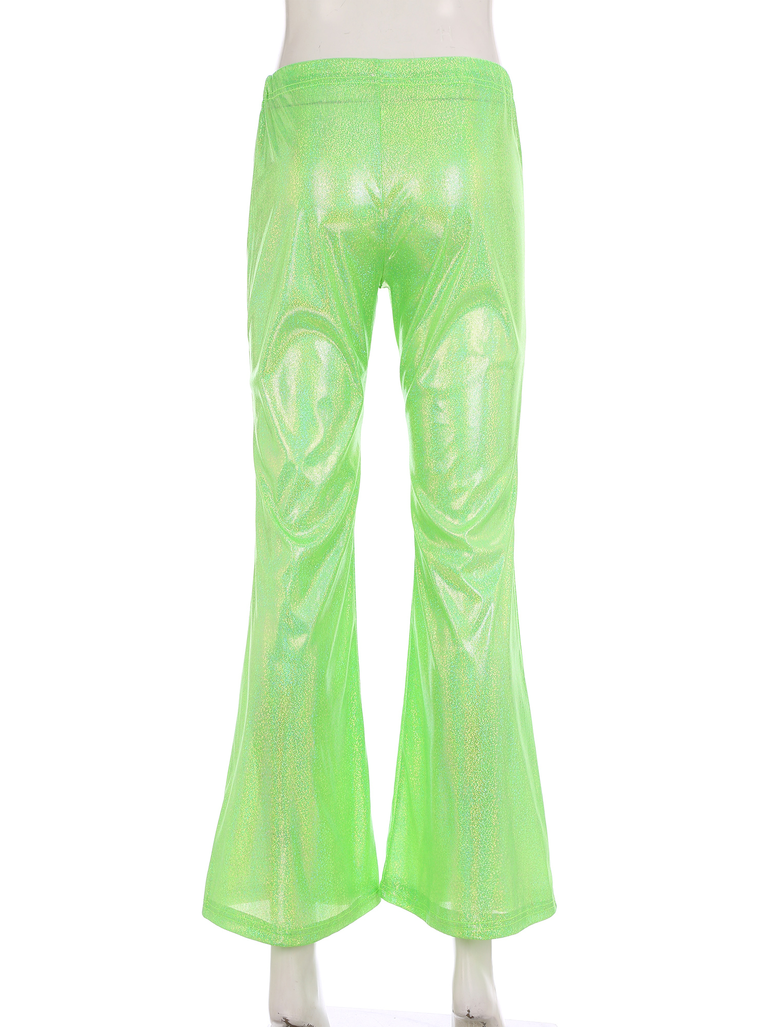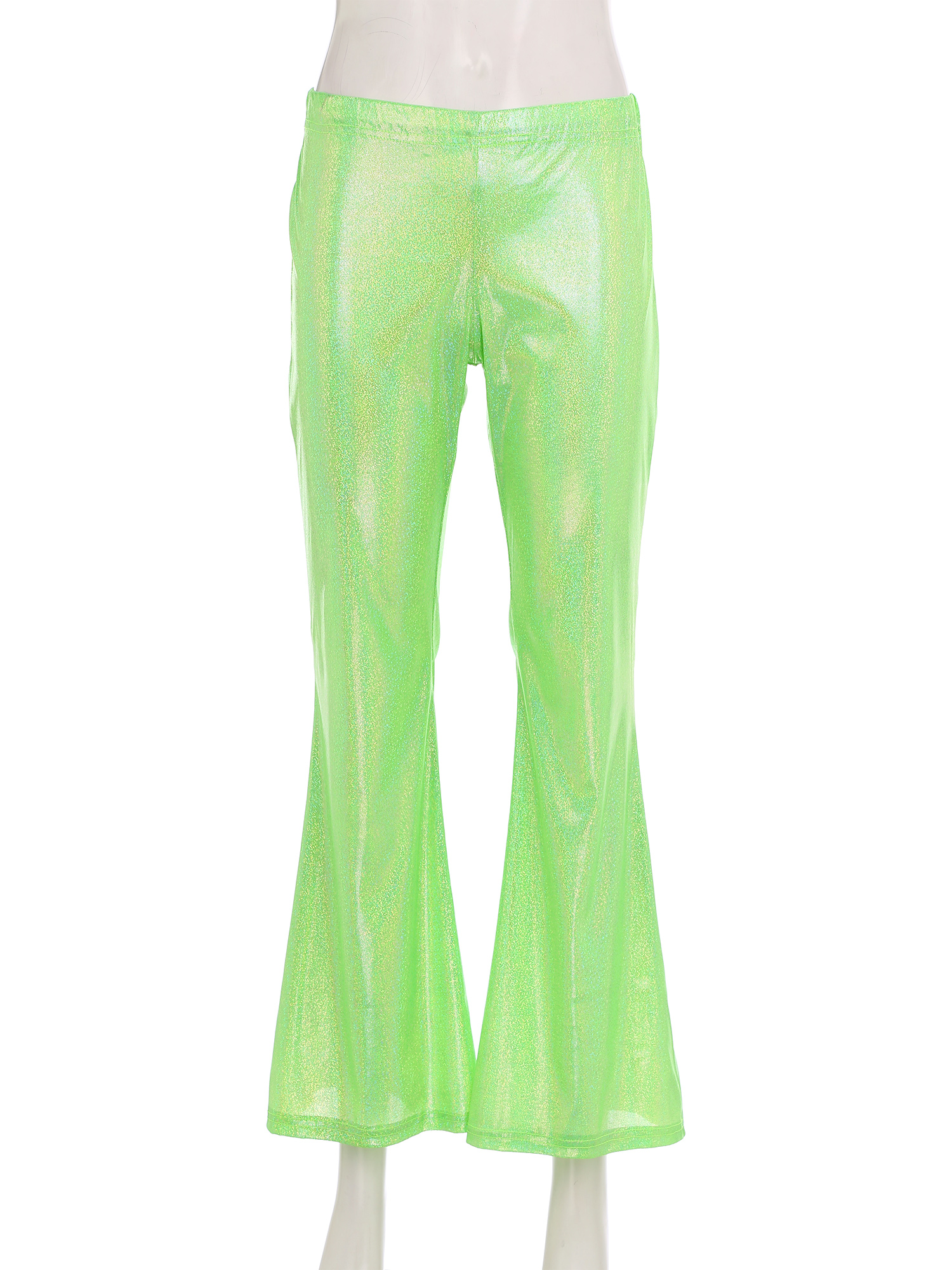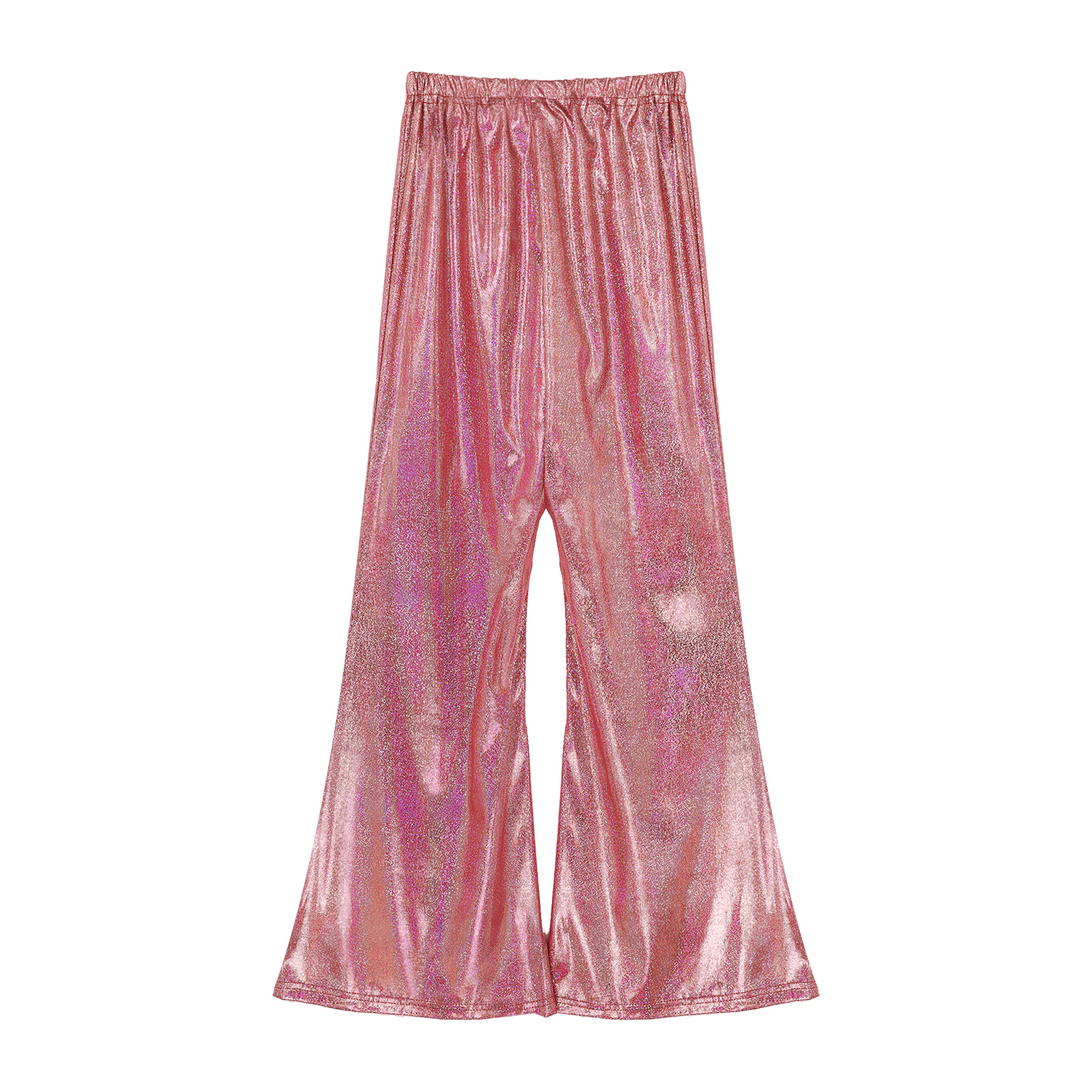 Womens New Fashion Shiny Holographic Flared Pants Elastic Waistband Bell-Bottomed Trousers for Dance Party Club Music Festival