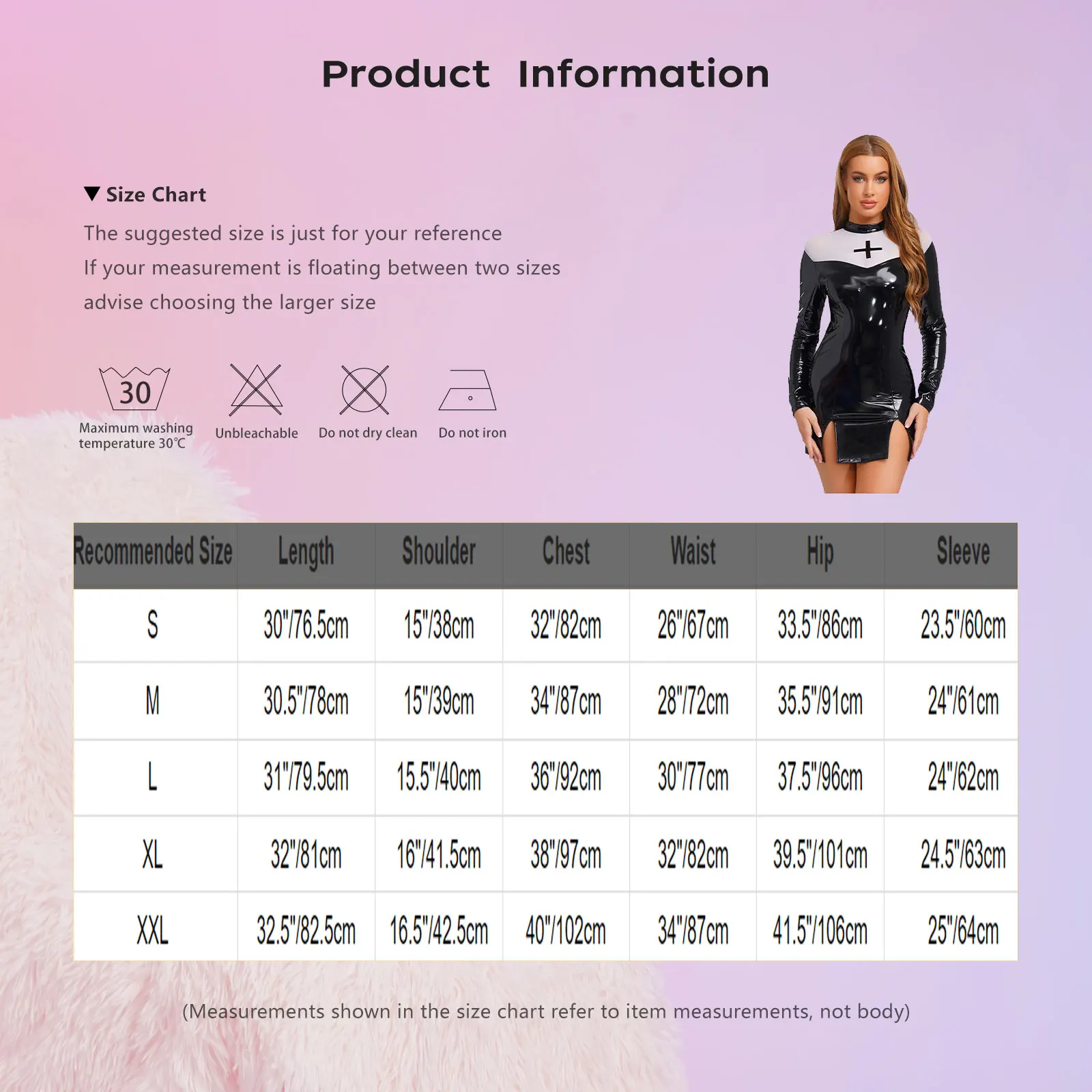 Size Chart: The suggested size is just for your reference. If your measurement is floating between two sizes, advise choosing the larger size. (Measurements shown in the size chart refer to item measurements, not body)