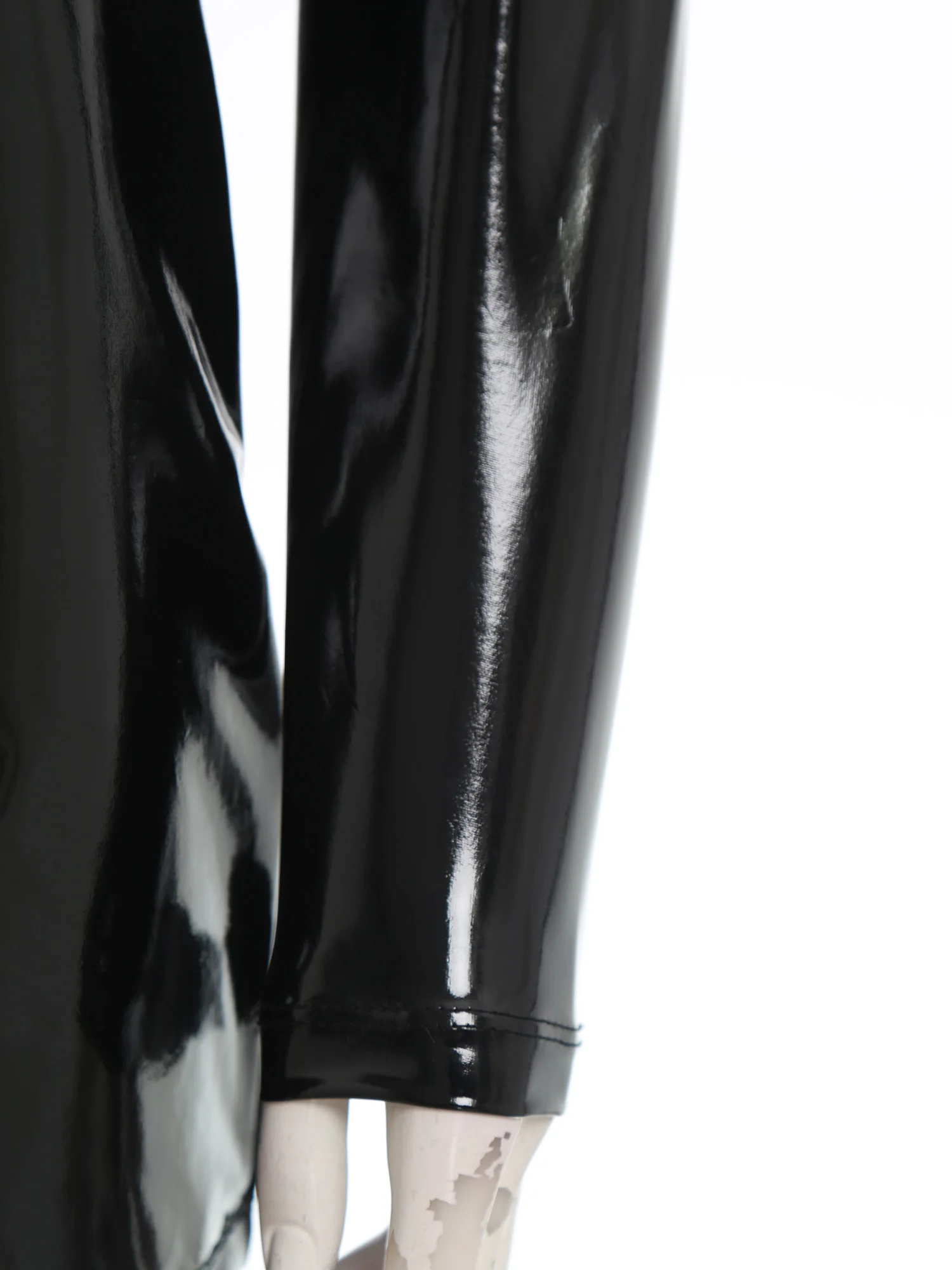 The mock neck and long-sleeve design add an air of mystery and elegance, which is in line with the current trend of minimalist yet alluring fashion.