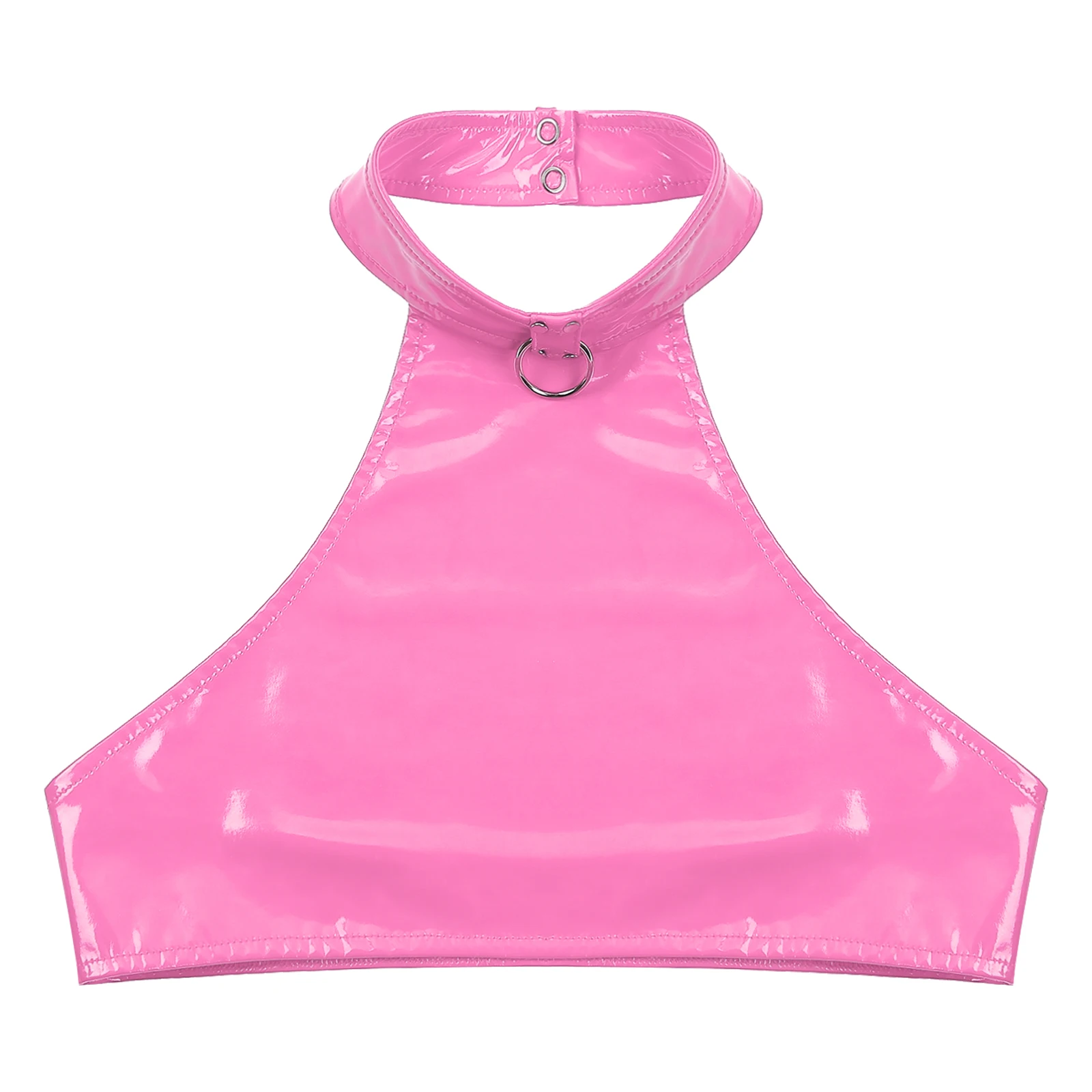 Backless crop top for women, o ring detail, halter neck with 2 press buttons closure, easy to put on and off.