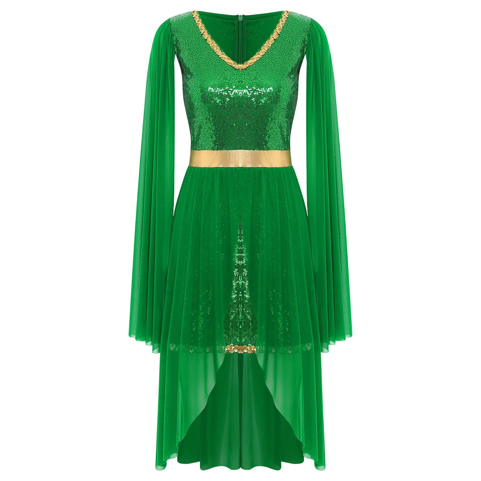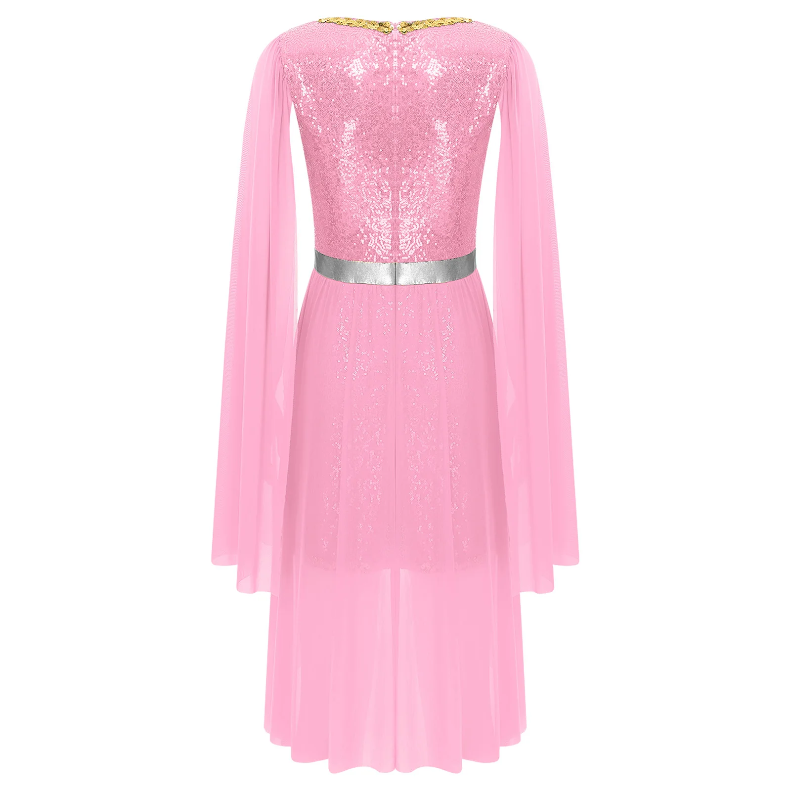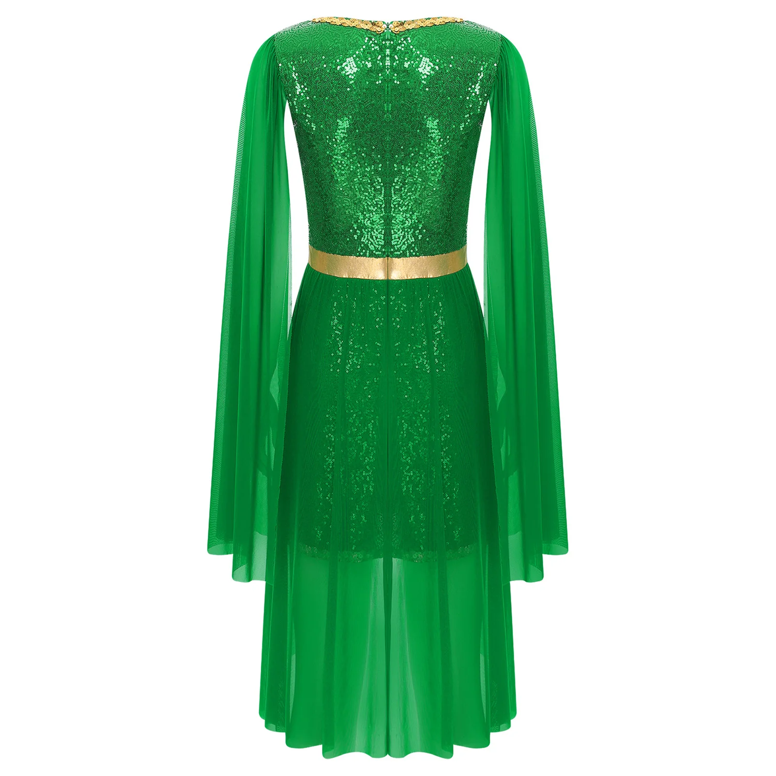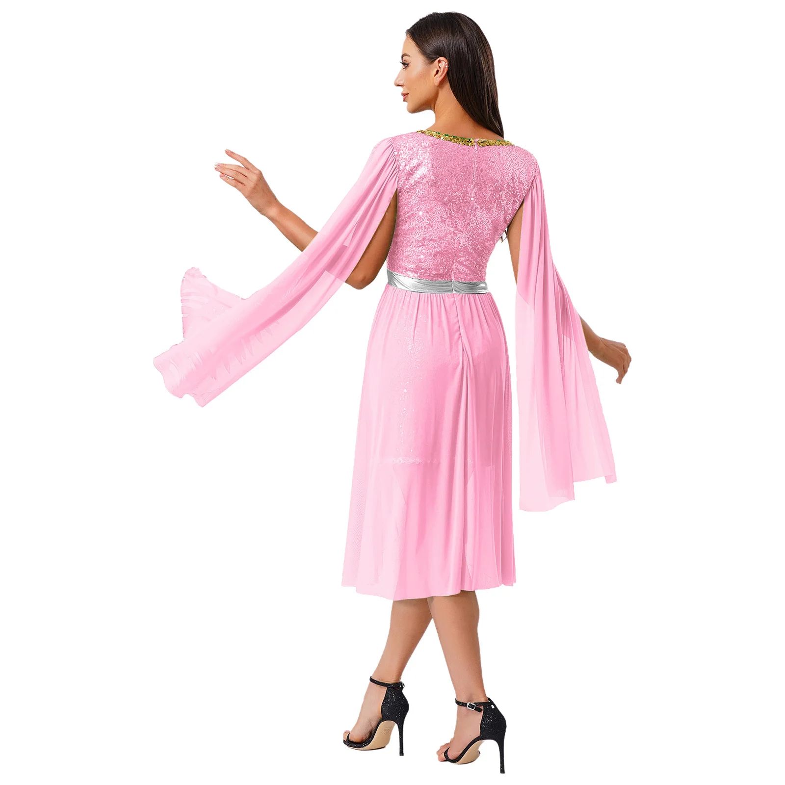 Crafted from a blend of polyester, sequin, and spandex, the dress is stretchy, shiny, and offers a comfortable fit for all-day wear.