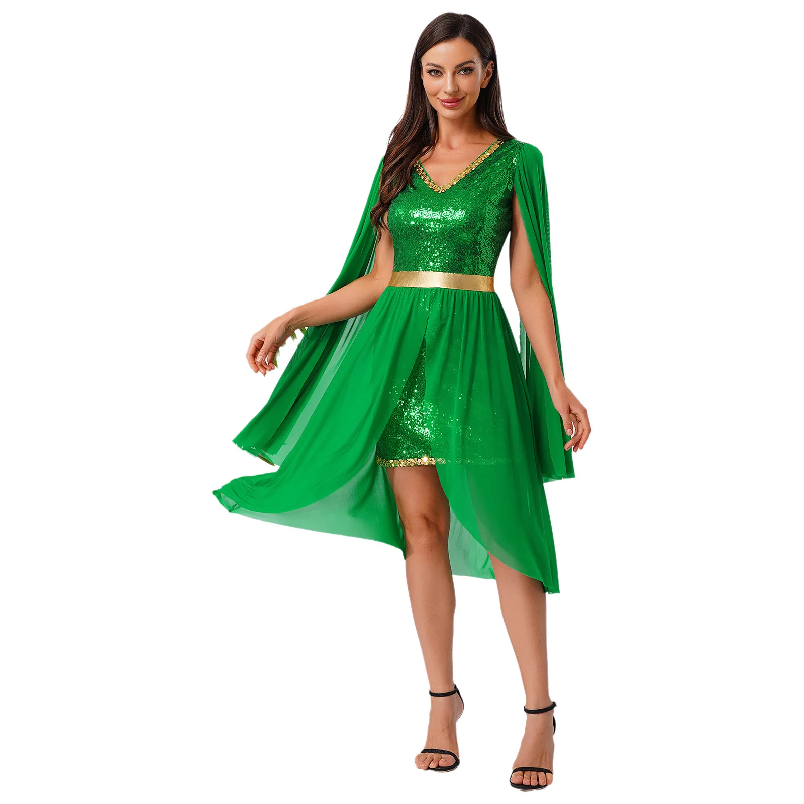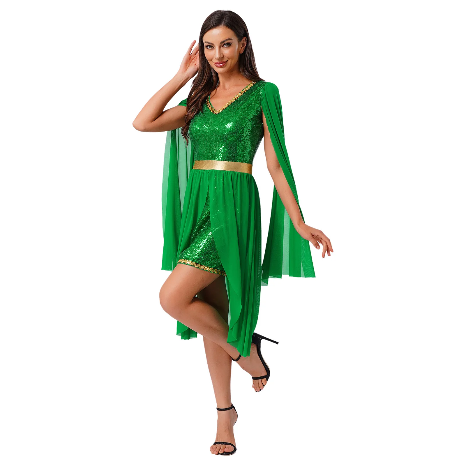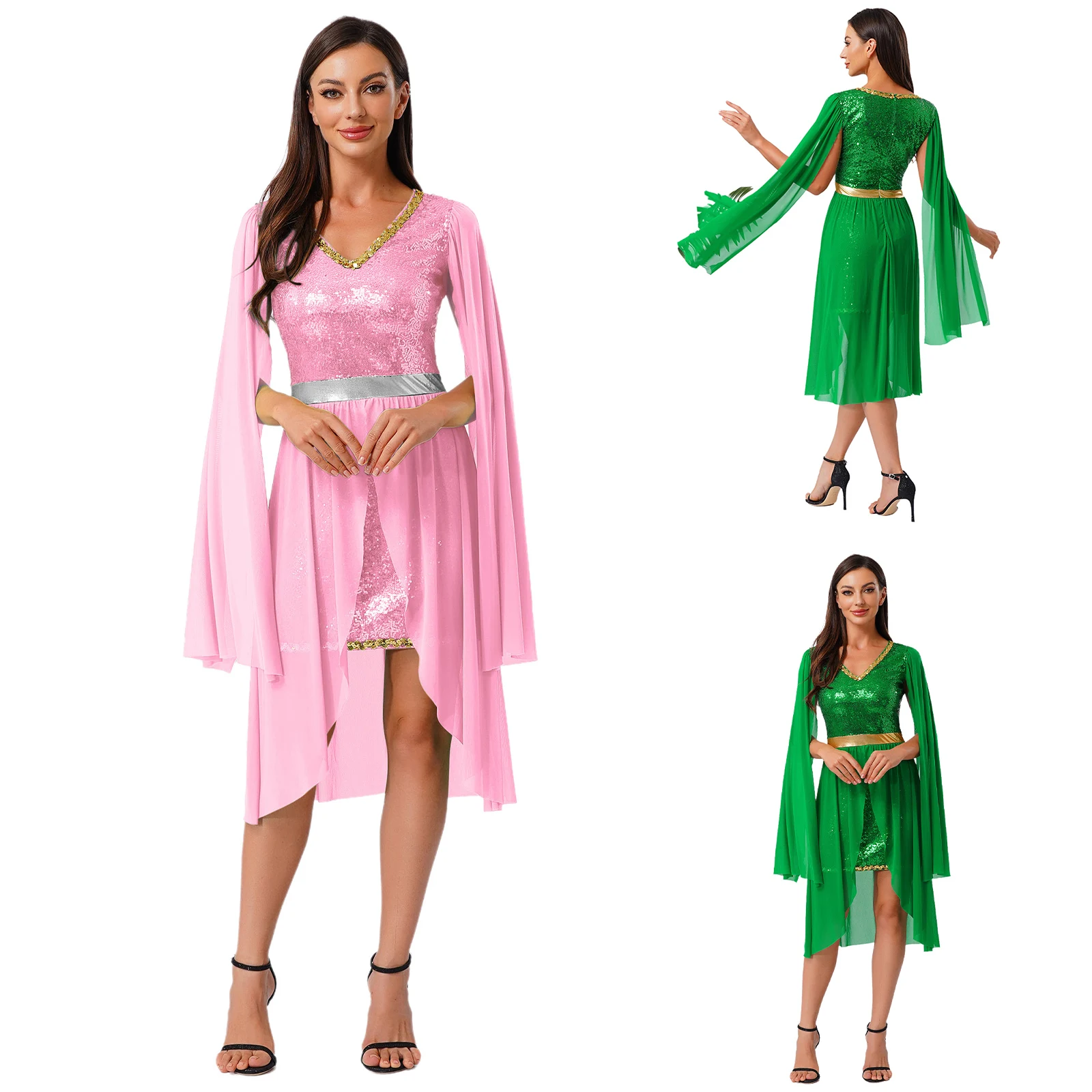 Womens Princess Fairy Cosplay Dress Mesh Skirted Overlay Shiny Sequin Tube Tutu Dress Butterfly Forest Elf Halloween Costume