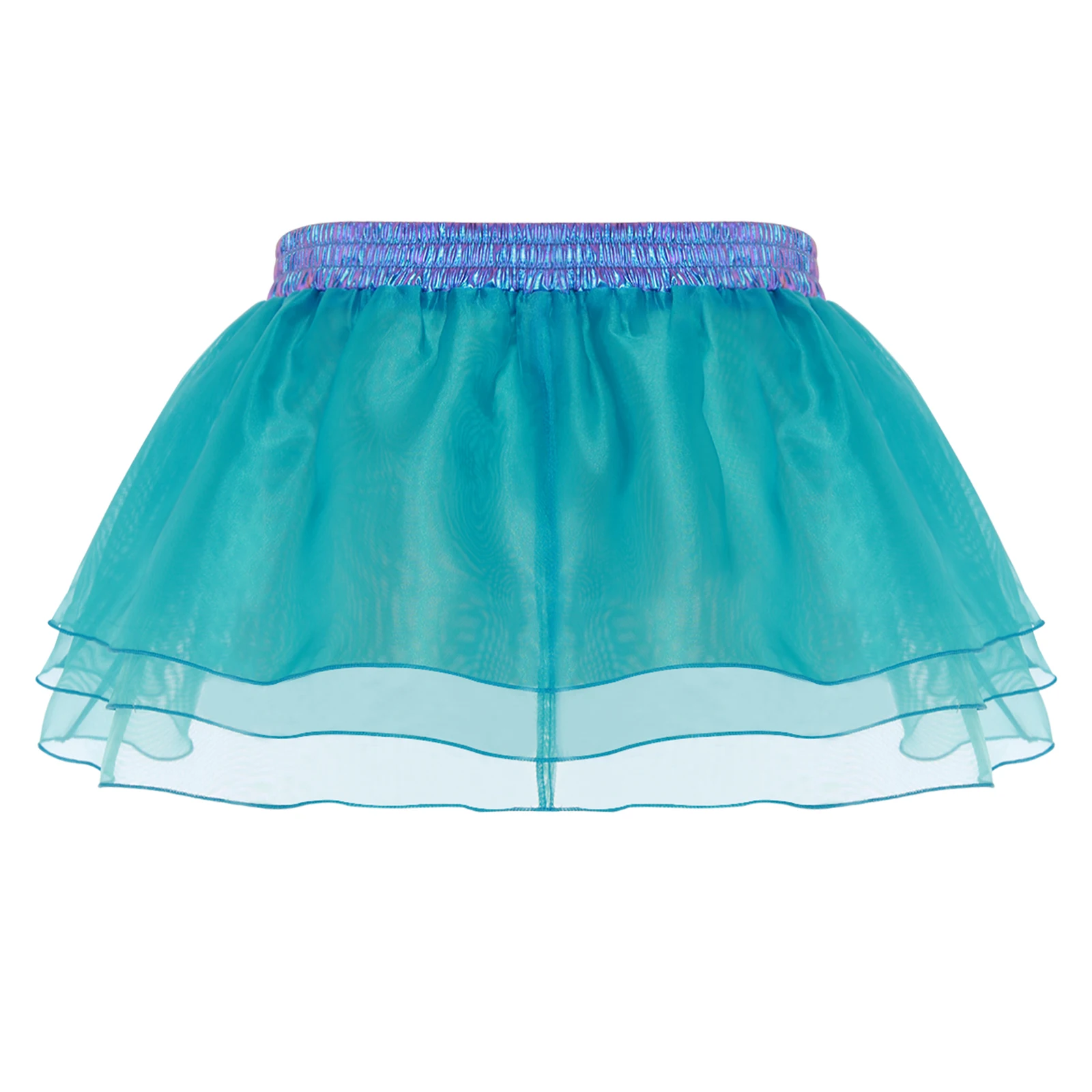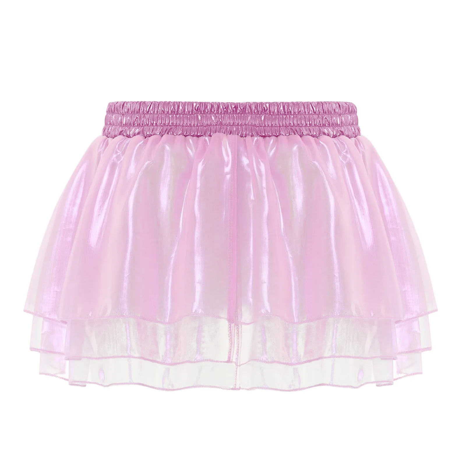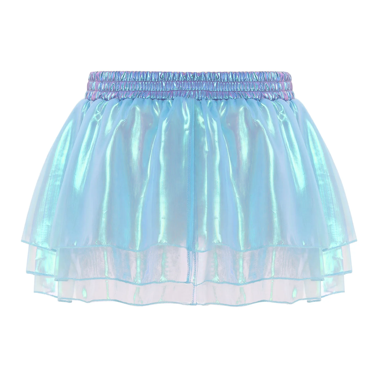 Womens Shiny Glitter Short Skirt for Pole Dancing Three Layers Tiered A-line Pleated Short Skirt Rave Festival Costume Clubwear