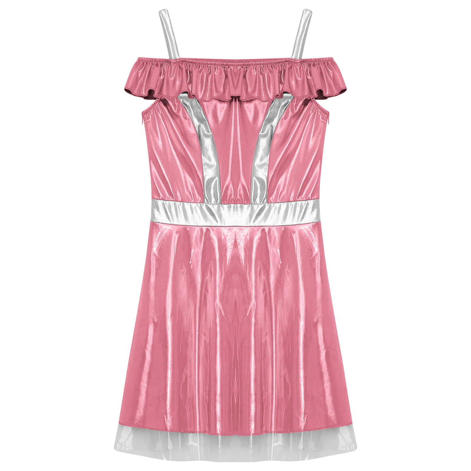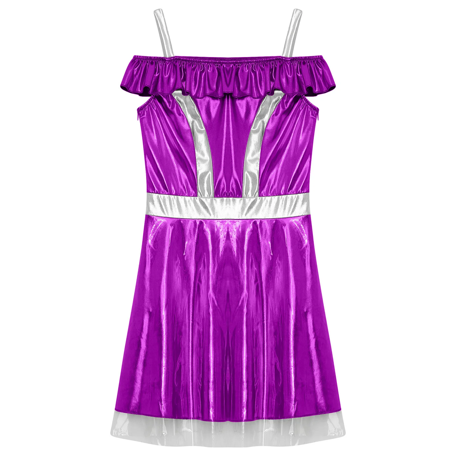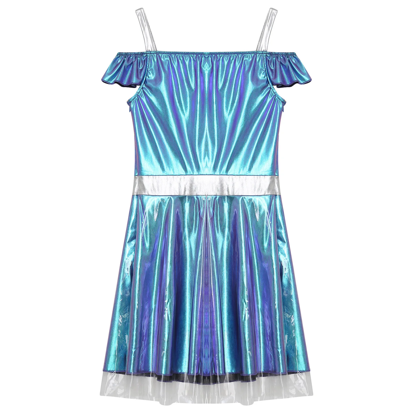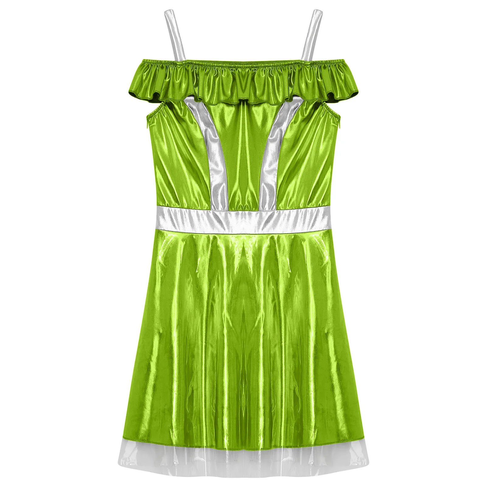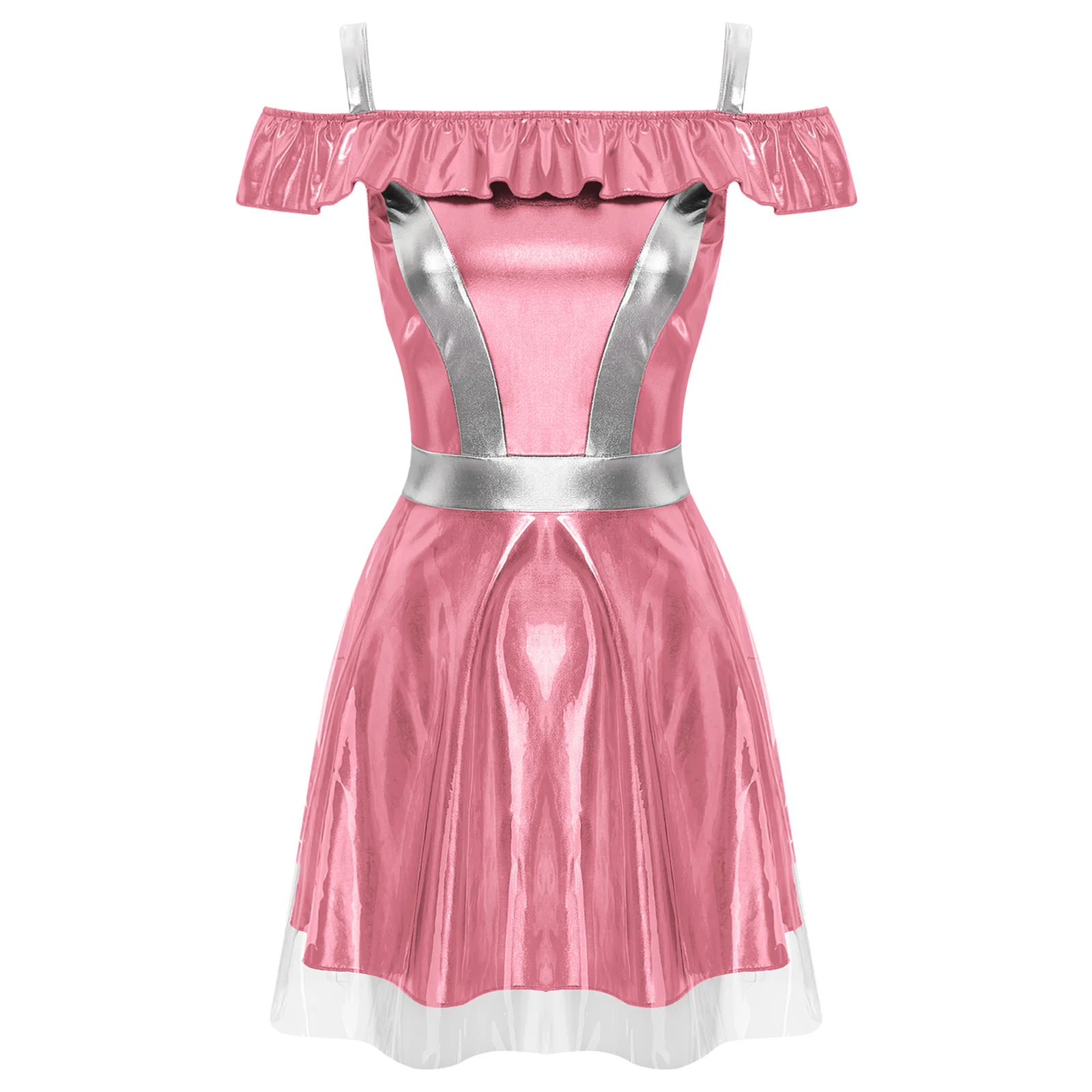 Womens Space Cadet Fighter Alien Dress Up Cosplay Costume Metallic Shiny Halloween Outfits Astronaut Robot Tulle Cami Dress