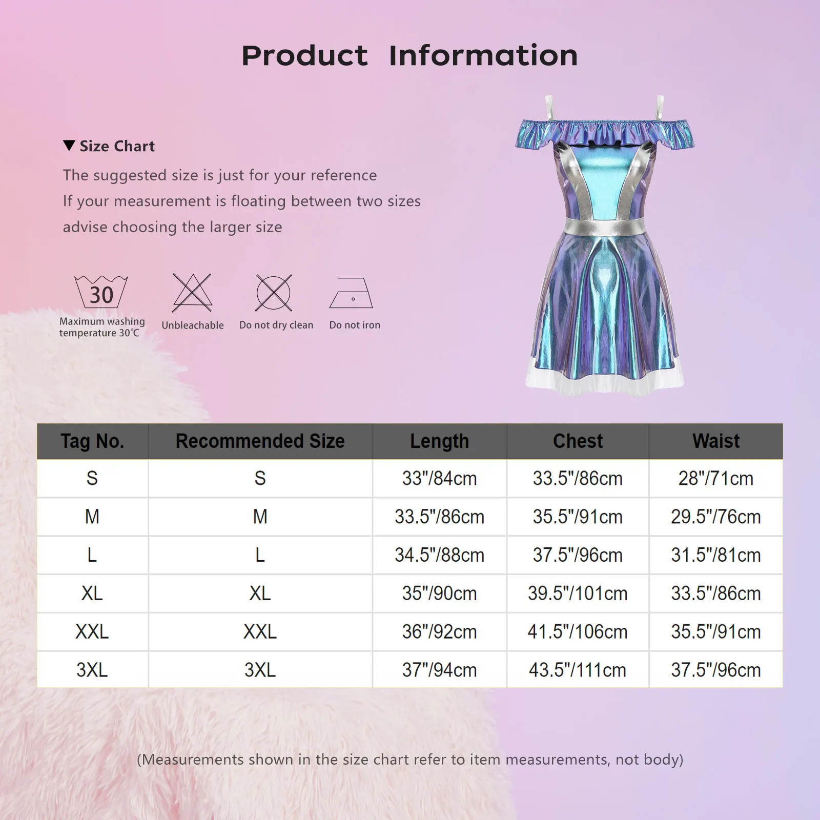 Size Chart: The suggested size is just for your reference. If your measurement is floating between two sizes, advise choosing the larger size. (Measurements shown in the size chart refer to item measurements, not body)