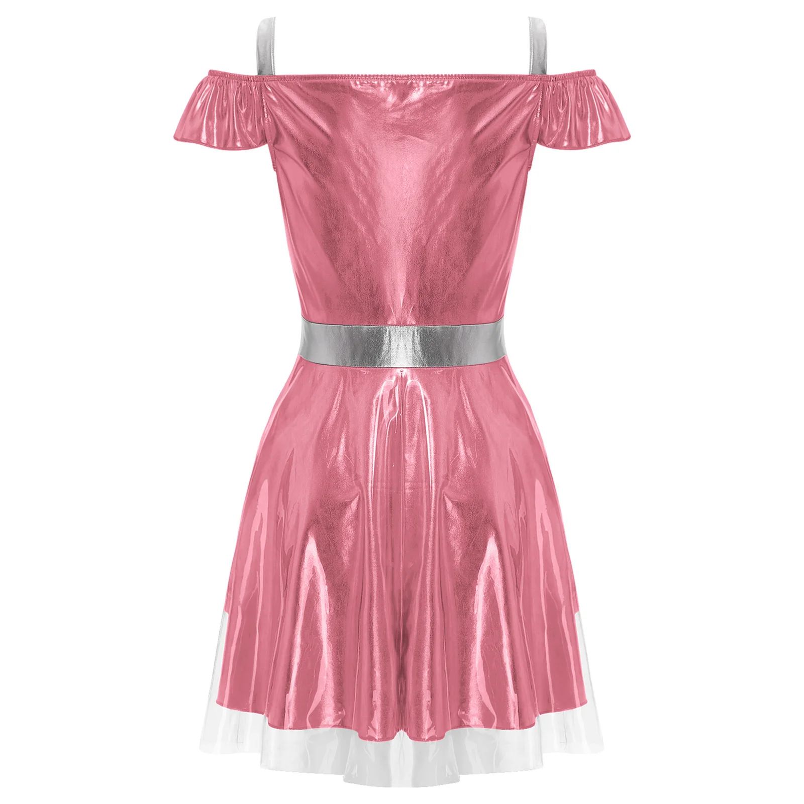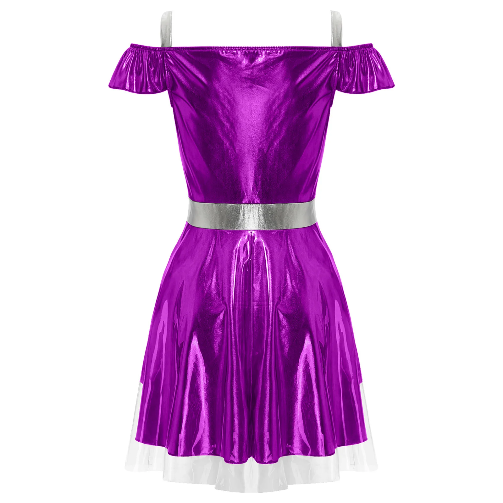 Metallic shiny fabric has unique luster and brings a very futuristic look. Contrast design makes a slim effect to make you attractive.